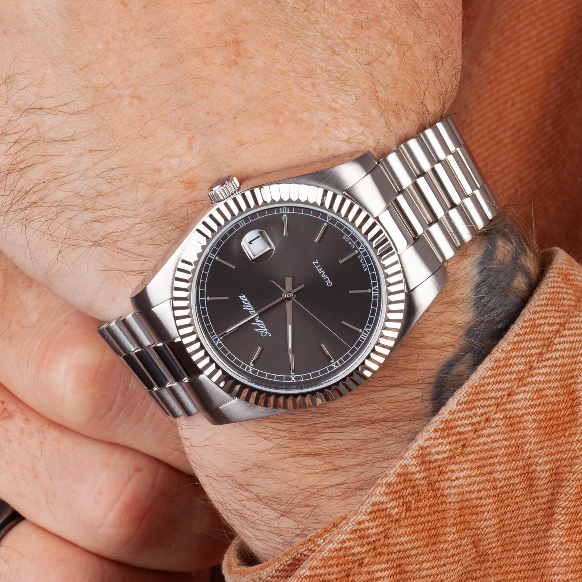 Часы Adriatica A1090.5116Q воплощают в себе классический стиль и надежность, идеально подходящие для современных мужчин. Их черный циферблат, защищенный минеральным стекломМинеральное стеклоМинеральное стекло представляет собой искусственно выращенный минерал кварца. Такое стекло отличается особой устойчивостью к повреждениям и царапинам. Уступает по некоторым качествам сапфировому стеклу., заключен в корпус из прочной нержавеющей стали. Надежный кварцевый механизм с калибром RONDA 515 обеспечивает точность, а водозащита уровня WR 50 (5 ATM) делает их устойчивыми к воздействию воды. Стальной браслет с раскладной застёжкойРаскладная застёжкаТакой тип застёжки используется только на браслетах из металла. Она никогда не раскрывается полностью, происходит разделение на 2 и более частей. Раскладывающая застёжка снизит вероятность потери часов к минимуму. подчеркивает элегантный стиль и комфортно сидит на запястье. Часы оснащены функцией отображения даты в окошке в положении 3 часа, что добавляет практичности в повседневной жизни. Люминесцентное покрытиеЛюминесцентное покрытиеПозволяет считывать показания времени в темноте. Производители наносят на стрелки, часовые индексы, безель или поверхность циферблата светонакопительный состав, дающий холодное свечение. на стрелках и метках обеспечивает отличную видимость в темноте.