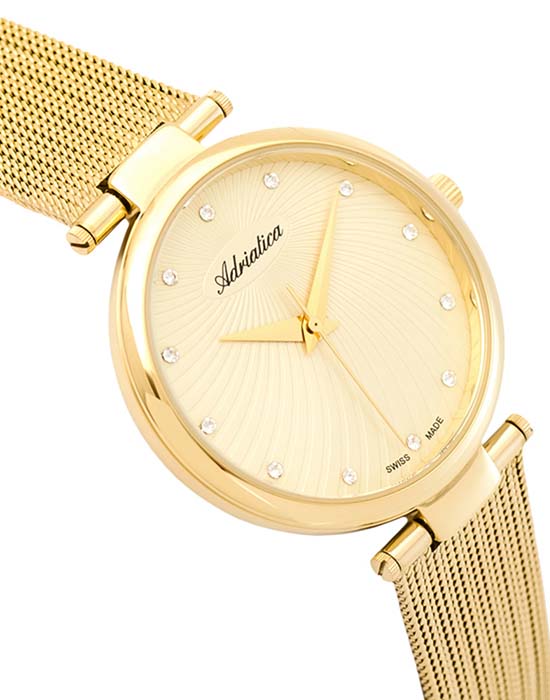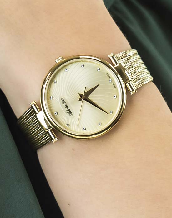 Женские часы с минеральным стеклом Adriatica A3689.1141Q, кварцевый механизм с высокой точностью. Класс водозащиты: 30 метров, позволит защитить корпус от случайных брызг или капель дождя. Корпус часов изготовлен из стали, золотистого цвета.