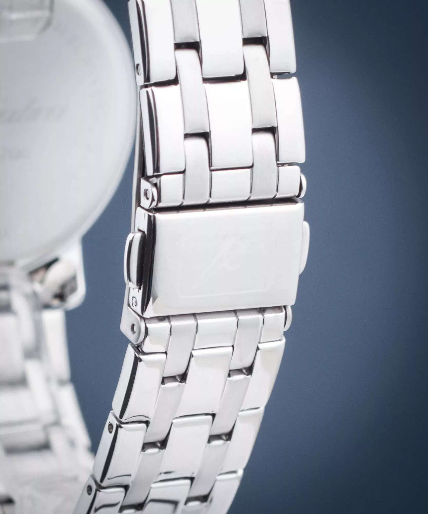 Женские часы Adriatica A3808.51B3QF воплощают в себе утонченность и надежность швейцарского часового искусства. Эти часы идеально подойдут для тех, кто ценит стиль и качество в одном изделии. Серебристый циферблат защищен минеральным стекломМинеральное стеклоМинеральное стекло представляет собой искусственно выращенный минерал кварца. Такое стекло отличается особой устойчивостью к повреждениям и царапинам. Уступает по некоторым качествам сапфировому стеклу. и заключен в корпус, выполненный из нержавеющей стали, диаметром 35 мм, которое придает дополнительную прочность и элегантный вид. Часы оснащены кварцевым механизмом RONDA 706, обеспечивающим высокую точность и надежность. Водозащита 50WR делает их устойчивыми к воздействию воды, что позволяет не беспокоиться о случайных брызгах. Стальной браслет с раскладной застёжкойРаскладная застёжкаТакой тип застёжки используется только на браслетах из металла. Она никогда не раскрывается полностью, происходит разделение на 2 и более частей. Раскладывающая застёжка снизит вероятность потери часов к минимуму. подчеркивает современный стиль и обеспечивает комфортное ношение. День недели и число отображается на отдельных циферблатах. Индикатор фазы Луны.