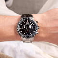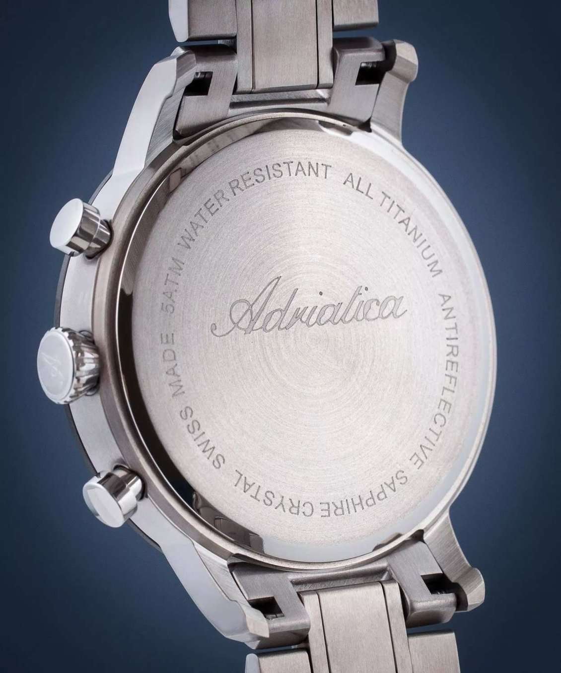 Мужские швейцарские часы-хронографХронографФункция позволяет измерять отрезки времени с особой точностью: часы, минуты, секунды. Верным признаком хронографа является наличие на циферблате 3 дополнительных окошек-счётчиков. с секундомеромСекундомерСекундоме́р — прибор, способный измерять интервалы времени с точностью до долей секунды. и тахиметромТахиметрРазмеченная шкала, располагается на ободке или безеле часов. Тахиметр позволяет рассчитать скорость на определённом участке пути, расстояние измеряется в километрах или милях. Adriatica Aviation A8383.4114CH воплощают в себе элегантность и функциональность, их выбирают целеустремленные мужчины, которые знают цену времени. Черный циферблат часов, защищенный сапфировым стекломСапфировое стеклоПрочный и надёжный материал из кристалла сапфира синтетического происхождения, характеризующийся особой твёрдостью и устойчивостью к царапинам и повреждениям., заключен в корпус из титана диаметром 46 мм и толщиной 12 мм. Надежный кварцевый механизм с калибром Ronda 5040.B обеспечивает высокую точность, а водозащита 5 ATM делает часы устойчивыми к воздействию воды. Стальной браслет с раскладной застёжкойРаскладная застёжкаТакой тип застёжки используется только на браслетах из металла. Она никогда не раскрывается полностью, происходит разделение на 2 и более частей. Раскладывающая застёжка снизит вероятность потери часов к минимуму. обеспечивает комфортное и надежное ношение. Циферблат с метками в виде штрихов имеет 3 дополнительных циферблата, а также окошко даты в положении «12» , что добавляет практичности в повседневной жизни. Люминесцентное покрытиеЛюминесцентное покрытиеПозволяет считывать показания времени в темноте. Производители наносят на стрелки, часовые индексы, безель или поверхность циферблата светонакопительный состав, дающий холодное свечение. на стрелках и метках обеспечивает отличную видимость в темноте.