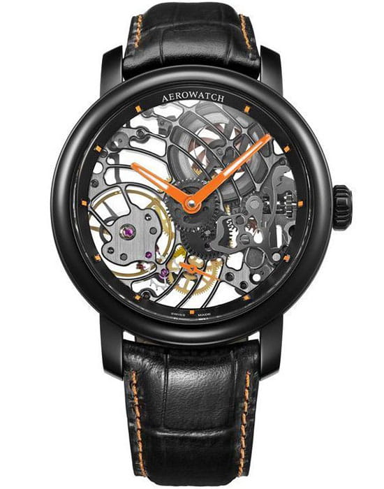 Мужские швейцарские механические часы-скелетоны Aerowatch 50931 NO08, механический механизм (автоматический калибр) с высокой точностью. Сапфировое стекло устойчивое к появлению царапин, обладающее высокой прозрачностью. Класс водозащиты: 50 метров, позволит защитить корпус от случайных брызг или капель дождя. Корпус часов изготовлен из стали, черного цвета.