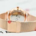 Amalys AMW-192 — женский набор, включающий часы и браслет, выполненный в едином элегантном стиле. Круглый корпус диаметром 33 мм изготовлен из нержавеющей стали с PVDPVDУльтратонкое покрытие наносится в технике вакуумного напыления, сочетает в себе нитрид титана особой прочности со слоем золота или оксида хрома. Несёт в себе декоративную или защитную функцию.-покрытием тёплого золотистого оттенка, что подчёркивает изысканный характер модели. Защитную функцию выполняет сапфировое стеклоСапфировое стеклоПрочный и надёжный материал из кристалла сапфира синтетического происхождения, характеризующийся особой твёрдостью и устойчивостью к царапинам и повреждениям., стойкое к царапинам и сохраняющее прозрачность. Механизм — кварцевый, обеспечивающий точность хода и удобство в использовании. Водозащита 3 ATM защищает от случайных брызг и дождя. Циферблат оформлен в минималистичном стиле с тонкими метками и изящными стрелками, подчёркивающими женственный образ. Стальной браслет миланского плетения с PVDPVDУльтратонкое покрытие наносится в технике вакуумного напыления, сочетает в себе нитрид титана особой прочности со слоем золота или оксида хрома. Несёт в себе декоративную или защитную функцию.-покрытием на раскладном замкеРаскладной замокДанный вариант застежки используется только на часах с металлическим браслетом. Отличительная особенность такого крепления в том, что длина браслета становится универсальной и вы можете самостоятельно отрегулировать нужный вам размер – застежка просто двигается по браслету часов. мягко облегает запястье и гармонично сочетается с корпусом. Дополняющий набор браслет усиливает впечатление цельности и придаёт образу завершённость.