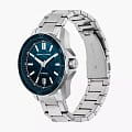 Мужские наручные часы с минеральным стекломМинеральное стеклоМинеральное стекло представляет собой искусственно выращенный минерал кварца. Такое стекло отличается особой устойчивостью к повреждениям и царапинам. Уступает по некоторым качествам сапфировому стеклу. Armani Exchange Dante AX1950, кварцевый механизм с высокой точностью. Класс водозащиты: 100 метров, позволит плавать, нырять и заниматься другими водными видами спорта. Корпус часов изготовлен из стали. Стальной браслет на раскладной застёжкеРаскладная застёжкаТакой тип застёжки используется только на браслетах из металла. Она никогда не раскрывается полностью, происходит разделение на 2 и более частей. Раскладывающая застёжка снизит вероятность потери часов к минимуму.. Вращающийся безельБезельВнешний ободок, закрепляющий стекло. В спортивных часах так называется поворотное кольцо с делениями на циферблате, выполняет роль таймера – замеряет отрезки времени на шкале. Неподвижный безель – элемент декора. Однонаправленно вращающийся безель на дайверских часах позволяет фиксировать моменты погружения и выныривания на поверхность. с IP-покрытиемIP-покрытиеМетод ионного напыления. Демонстрирует повышенную устойчивость к истиранию, окислению и химическим веществам. Под воздействием высокого давления и температуры около 1500°C молекулы металла надёжно соединяются с частицами корпуса часов.. Текстурированный циферблат с метками в виде штрихов. Окошко даты находится в положении 6 часов.