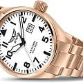 Матовый циферблат с крупными арабскими цифрами, широкими стрелками и контрастной шкалой минут обеспечивает точную и быструю считываемость информации — как и положено настоящим пилотским часам. У отметки «3 часа» — окошко даты. Часовые метки и стрелки покрыты люминесцентным покрытиемЛюминесцентное покрытиеПозволяет считывать показания времени в темноте. Производители наносят на стрелки, часовые индексы, безель или поверхность циферблата светонакопительный состав, дающий холодное свечение. Superluminova, позволяющим легко определять время даже в тёмное время суток.