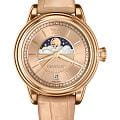 Aviator Douglas MoonFlight V.1.33.2.260.4 — элегантные дамские швейцарские часы с утончённой авиационной эстетикой. Корпус 36 мм из нержавеющей стали 316L с PVD-покрытиемPVDУльтратонкое покрытие наносится в технике вакуумного напыления, сочетает в себе нитрид титана особой прочности со слоем золота или оксида хрома. Несёт в себе декоративную или защитную функцию. обладает компактными пропорциями и удобным профилем. Циферблат в стиле Art Deco украшает усложнение фаз Луны в верхней половине, обрамлённой тонким кольцом облаков. Отмечено окно даты в положении «6 часов». Стрелки обработаны люминесцентным покрытиемЛюминесцентное покрытиеПозволяет считывать показания времени в темноте. Производители наносят на стрелки, часовые индексы, безель или поверхность циферблата светонакопительный состав, дающий холодное свечение. Superluminova — для уверенного считывания в темноте. Поверхность защищена сапфировым стекломСапфировое стеклоПрочный и надёжный материал из кристалла сапфира синтетического происхождения, характеризующийся особой твёрдостью и устойчивостью к царапинам и повреждениям. с антибликовым покрытиемАнтибликовое покрытиеСлой оксида металла в 0,13-0,3 микрон, благодаря которому стекло часов не бликует и не отражает свет. Антибликовое покрытие уменьшает отражение света в 10 раз, обеспечивая отличную читаемость показателей циферблата.. Сердце модели — швейцарский кварцевый механизм Ronda 708 с функцией отображения лунных фаз, 13 рубинами и возможностью работать до 54 месяцев без замены батареи. Завинчивающаяся задняя крышка с гравировкой Douglas DC-3 и водозащита до 100 метров создают надёжную основу для эксплуатации.Кожаный ремень со стандартной застежкой сочетает в себе комфорт, элегантность и практичность. Лимитированная серия - 950 экземпляров. Aviator Douglas MoonFlight — это гармоничное сочетание авиационного наследия, женской элегантности и технической изысканности, воплощённое в элегантном и функциональном аксессуаре.