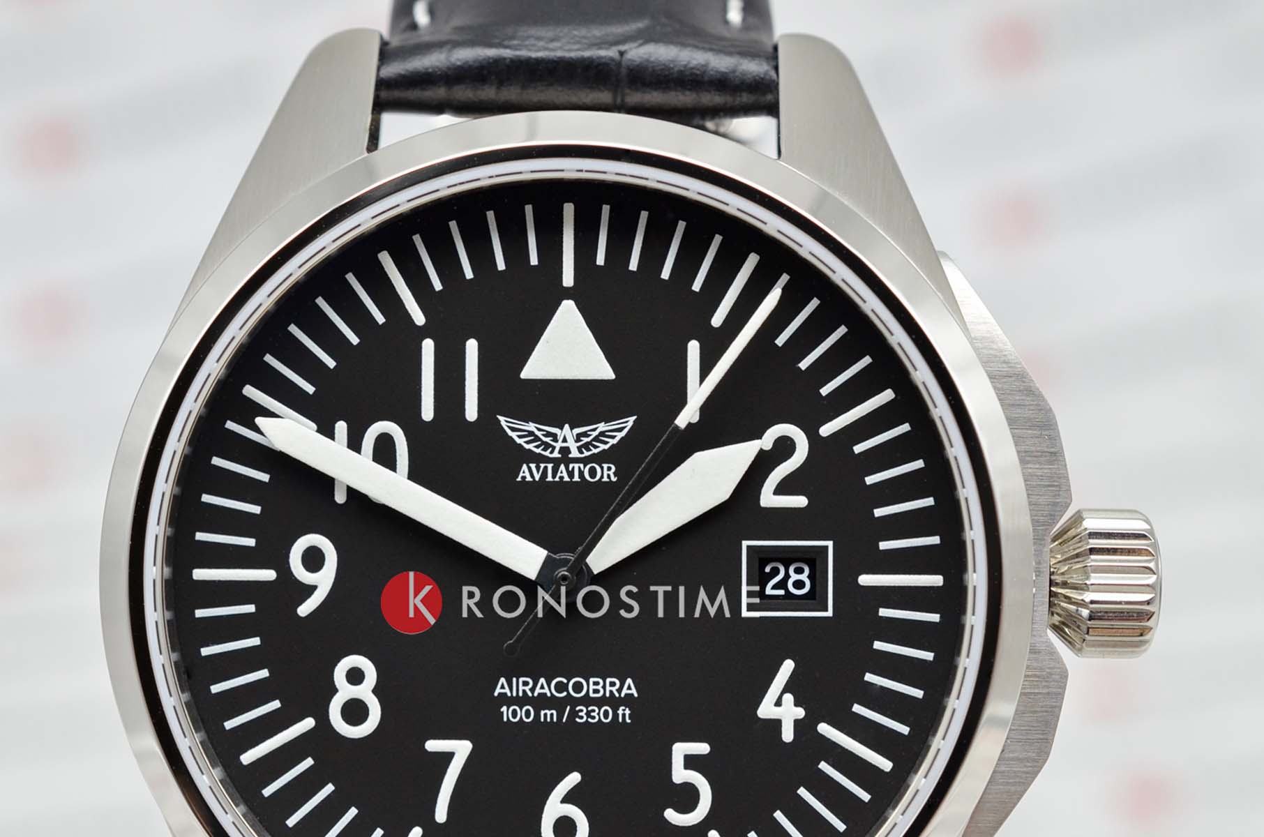 Aviator V.1.38.0.315.4 “Airacobra 43 Type A” — надёжные швейцарские пилотские часы с насыщенным функционалом и строгим авиационным дизайном. Корпус диаметром 42,8 мм выполнен из нержавеющей стали.