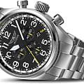Aviator Airacobra V.2.25.0.169.5 — швейцарский GMT-хронограф в духе пилотских инструментов, объединяющий точность, удобство и лаконичный дизайн. Диаметр корпуса — 45 мм, выполнен из нержавеющей стали, что подчёркивает техническую надёжность в образе часов.