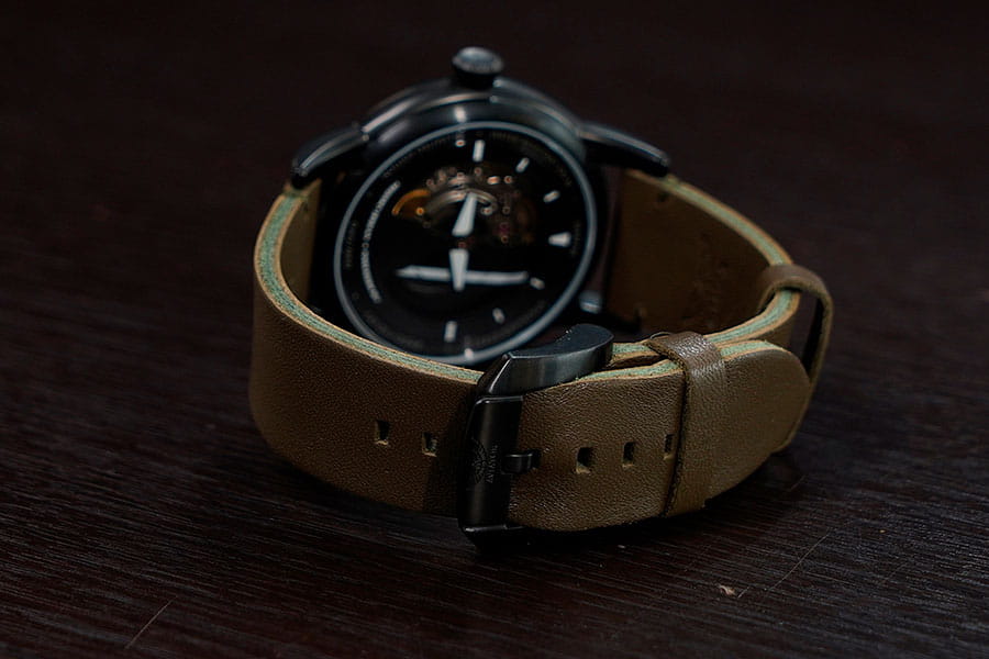 Aviator Douglas V.3.31.5.227.4 — швейцарские часы в классике авиадизайна, сочетающие безупречную читаемость и высокую надёжность. Лимитированная серия. Корпус диаметром 45 мм выполнен из нержавеющей стали с PVD-покрытиемPVDУльтратонкое покрытие наносится в технике вакуумного напыления, сочетает в себе нитрид титана особой прочности со слоем золота или оксида хрома. Несёт в себе декоративную или защитную функцию. черного цвета. Накладные метки выполнены в виде арабских цифр. Часовые метки и стрелки покрыты люминесцентным покрытиемЛюминесцентное покрытиеПозволяет считывать показания времени в темноте. Производители наносят на стрелки, часовые индексы, безель или поверхность циферблата светонакопительный состав, дающий холодное свечение. Superluminova, позволяющим легко определять время даже в тёмное время суток. Поверхность защищена прочным сапфировым стекломСапфировое стеклоПрочный и надёжный материал из кристалла сапфира синтетического происхождения, характеризующийся особой твёрдостью и устойчивостью к царапинам и повреждениям. с антибликовым покрытием, устойчивым к царапинам. Сердце модели — швейцарский механизм Sellita SW 200, известный своей точностью и долговечностью. Калибр управляется регулятором Etachron, который обеспечивает высокую точность хода как на земле, так и над землей. Водозащита 100 метров, позволит плавать, нырять и заниматься другими водными видами спорта. Завинчивающаяся головка и задняя крышка обеспечивают уверенную ударопрочностьУдаропрочный корпусМеханизм заключён в корпус, выполненный из современных материалов, устойчивых к ударам, механическим повреждениям и падению с высоты: инновационный пластик, карбон, нержавеющая сталь, титан. и надёжную защиту от влаги и пыли. В механизме 26 камней, запас хода 38 часов. Модель дополнена кожаным ремешком с выразительной текстурой и классическим стилем, закреплённым с помощью классической застежки — для максимального комфорта и лёгкости в повседневном использовании. Прозрачная задняя крышка украшена имитацией функции контроля управления хвоста самолета. Ротор механизма указывает на градусы, как в авиационном приборе триммер. Aviator — это образец лётной точности, инженерной чёткости и сдержанной роскоши, идеально подходящий для тех, кто ценит функциональность и уверенность в каждом элементе