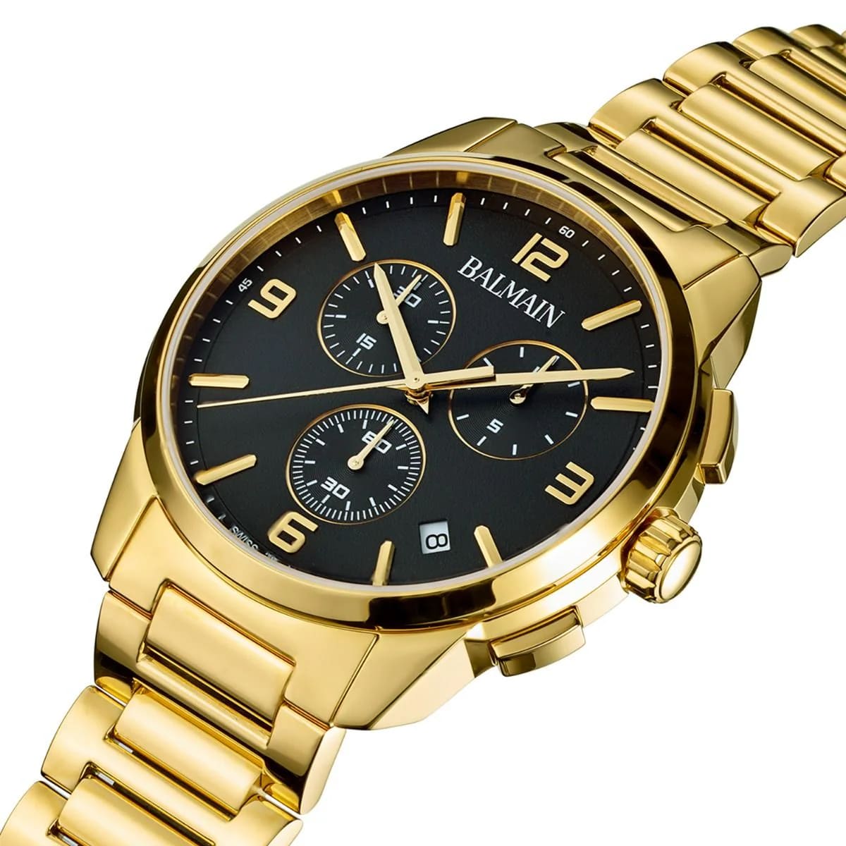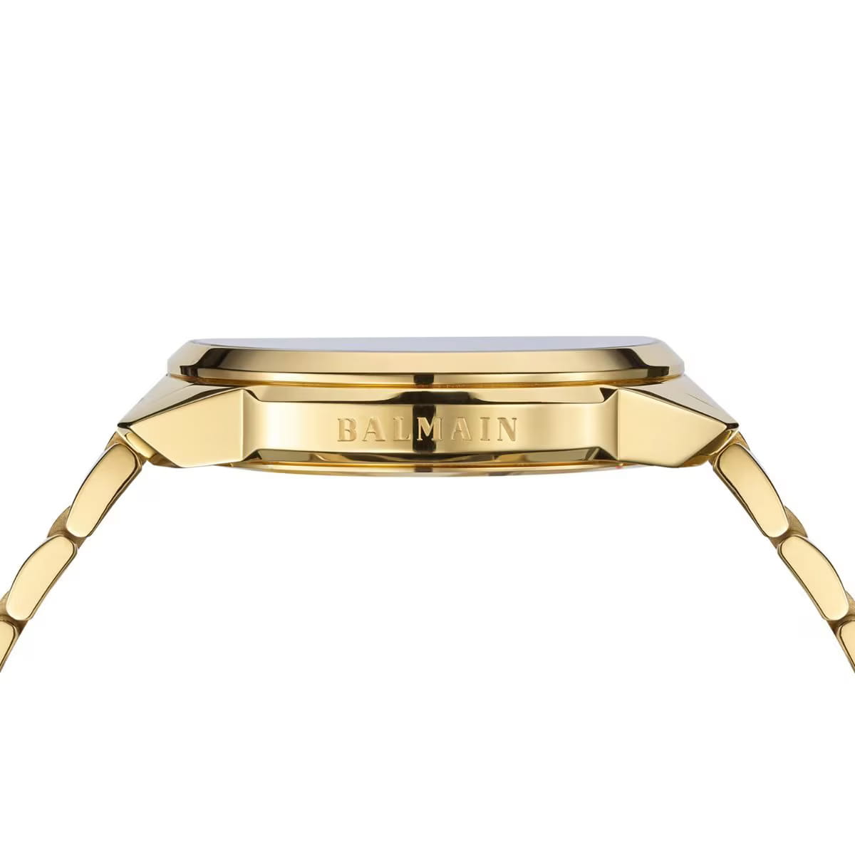 Женские часы Balmain Madrigal B7480.33.64 c хронографомХронографФункция позволяет измерять отрезки времени с особой точностью: часы, минуты, секунды. Верным признаком хронографа является наличие на циферблате 3 дополнительных окошек-счётчиков. кварцевый механизм с высокой точностью. Сапфировое стеклоСапфировое стеклоПрочный и надёжный материал из кристалла сапфира синтетического происхождения, характеризующийся особой твёрдостью и устойчивостью к царапинам и повреждениям. устойчивое к появлению царапин, обладающее высокой прозрачностью. Корпус изготовлен из нержавеющей стали PVD-покрытиемPVDУльтратонкое покрытие наносится в технике вакуумного напыления, сочетает в себе нитрид титана особой прочности со слоем золота или оксида хрома. Несёт в себе декоративную или защитную функцию.. Класс водозащиты: 50 метров, позволит защитить корпус от случайных брызг или капель дождя. Стальной браслет с PVD-покрытиемPVDУльтратонкое покрытие наносится в технике вакуумного напыления, сочетает в себе нитрид титана особой прочности со слоем золота или оксида хрома. Несёт в себе декоративную или защитную функцию. на застёжке «бабочка» с кнопкамиЗастёжка "бабочка"Такой вид застёжки дополняется предохранителями, помогающими избежать случайного раскрытия браслета. Обладают изящным исполнением. . Дата в положении между 4 и 5 часами.