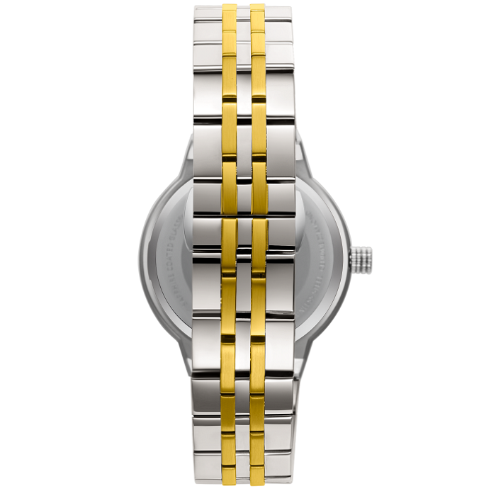 Часы дополнены стальным браслетом с частичным IP-покрытиемIP-покрытиеМетод ионного напыления. Демонстрирует повышенную устойчивость к истиранию, окислению и химическим веществам. Под воздействием высокого давления и температуры около 1500°C молекулы металла надёжно соединяются с частицами корпуса часов. и удобной застёжкой-бабочкойЗастёжка "бабочка"Такой вид застёжки дополняется предохранителями, помогающими избежать случайного раскрытия браслета. Обладают изящным исполнением. , обеспечивающей комфорт и надёжную фиксацию на руке.
