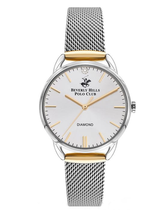 Американские женские часы с минеральным стеклом Beverly Hills Polo Club BP3299C.230 с минеральным стекломМинеральное стеклоМинеральное стекло представляет собой искусственно выращенный минерал кварца. Такое стекло отличается особой устойчивостью к повреждениям и царапинам. Уступает по некоторым качествам сапфировому стеклу., кварцевый механизм с высокой точностью. Класс водозащиты: 30 метров, позволит защитить корпус от случайных брызг или капель дождя. Корпус и браслет часов изготовлены из суперметалла с частичным IP-покрытиемIP-покрытиеМетод ионного напыления. Демонстрирует повышенную устойчивость к истиранию, окислению и химическим веществам. Под воздействием высокого давления и температуры около 1500°C молекулы металла надёжно соединяются с частицами корпуса часов.. Браслет с раскладной застёжкойРаскладная застёжкаТакой тип застёжки используется только на браслетах из металла. Она никогда не раскрывается полностью, происходит разделение на 2 и более частей. Раскладывающая застёжка снизит вероятность потери часов к минимуму..