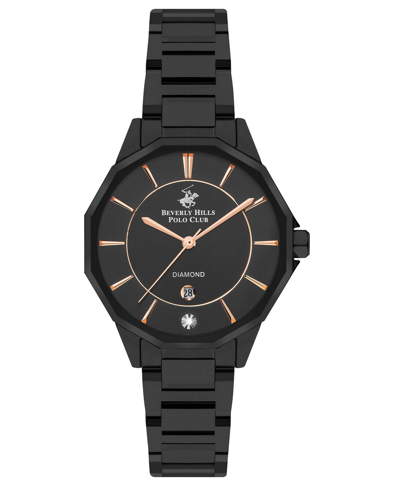 Американские женские часы Beverly Hills Polo Club BP3376X.650 с минеральным стекломМинеральное стеклоМинеральное стекло представляет собой искусственно выращенный минерал кварца. Такое стекло отличается особой устойчивостью к повреждениям и царапинам. Уступает по некоторым качествам сапфировому стеклу., кварцевый механизм с высокой точностью. Корпус и браслет часов изготовлены из нержавеющей стали с IP-покрытиемIP-покрытиеМетод ионного напыления. Демонстрирует повышенную устойчивость к истиранию, окислению и химическим веществам. Под воздействием высокого давления и температуры около 1500°C молекулы металла надёжно соединяются с частицами корпуса часов.. Циферблат украшен бриллиантом. Окошко даты находится в положении 6 часов. Класс водозащиты: 50 метров, позволит защитить корпус от случайных брызг или капель дождя. Браслет из нержавеющей стали на раскладной застёжкеРаскладная застёжкаТакой тип застёжки используется только на браслетах из металла. Она никогда не раскрывается полностью, происходит разделение на 2 и более частей. Раскладывающая застёжка снизит вероятность потери часов к минимуму..