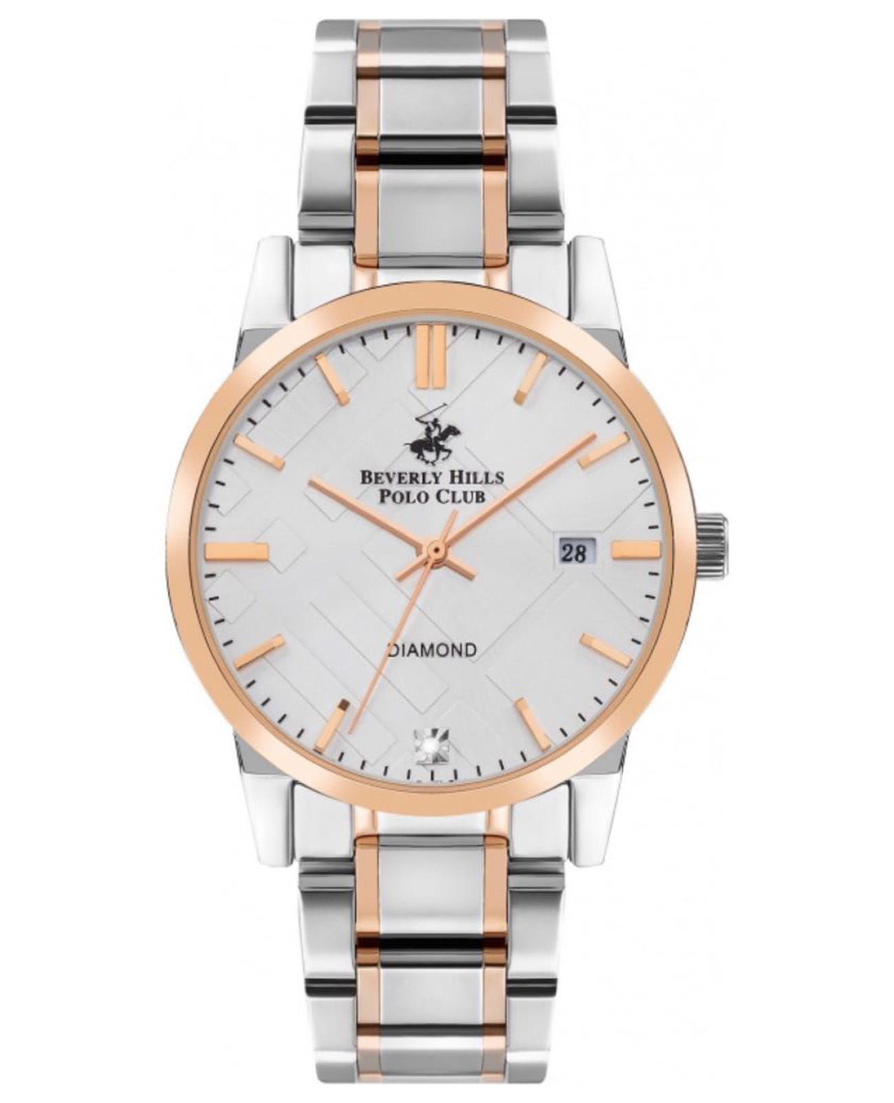 Американские женские часы с минеральным стекломМинеральное стеклоМинеральное стекло представляет собой искусственно выращенный минерал кварца. Такое стекло отличается особой устойчивостью к повреждениям и царапинам. Уступает по некоторым качествам сапфировому стеклу. Beverly Hills Polo Club BP3398C.530, кварцевый механизм с высокой точностью. Корпус часов изготовлен из нержавеющей стали. Неподвижный безельБезельВнешний ободок, закрепляющий стекло. В спортивных часах так называется поворотное кольцо с делениями на циферблате, выполняет роль таймера – замеряет отрезки времени на шкале. Неподвижный безель – элемент декора. Однонаправленно вращающийся безель на дайверских часах позволяет фиксировать моменты погружения и выныривания на поверхность. из нержавеющей стали с IP-покрытиемIP-покрытиеМетод ионного напыления. Демонстрирует повышенную устойчивость к истиранию, окислению и химическим веществам. Под воздействием высокого давления и температуры около 1500°C молекулы металла надёжно соединяются с частицами корпуса часов.. Циферблат украшен бриллиантом. Окошко даты в положении 3 часов. Класс водозащиты: 50 метров, позволит защитить корпус от случайных брызг или капель дождя. Стальной браслет с частичным IP-покрытиемIP-покрытиеМетод ионного напыления. Демонстрирует повышенную устойчивость к истиранию, окислению и химическим веществам. Под воздействием высокого давления и температуры около 1500°C молекулы металла надёжно соединяются с частицами корпуса часов. на раскладной застёжкеРаскладная застёжкаТакой тип застёжки используется только на браслетах из металла. Она никогда не раскрывается полностью, происходит разделение на 2 и более частей. Раскладывающая застёжка снизит вероятность потери часов к минимуму..