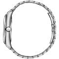 Завершает образ стальной браслет с раскладывающейся застежкой-бабочкойЗастёжка "бабочка"Такой вид застёжки дополняется предохранителями, помогающими избежать случайного раскрытия браслета. Обладают изящным исполнением. , обеспечивающей комфорт и уверенную фиксацию на запястье. Такая застежка выглядит стильно и практично.