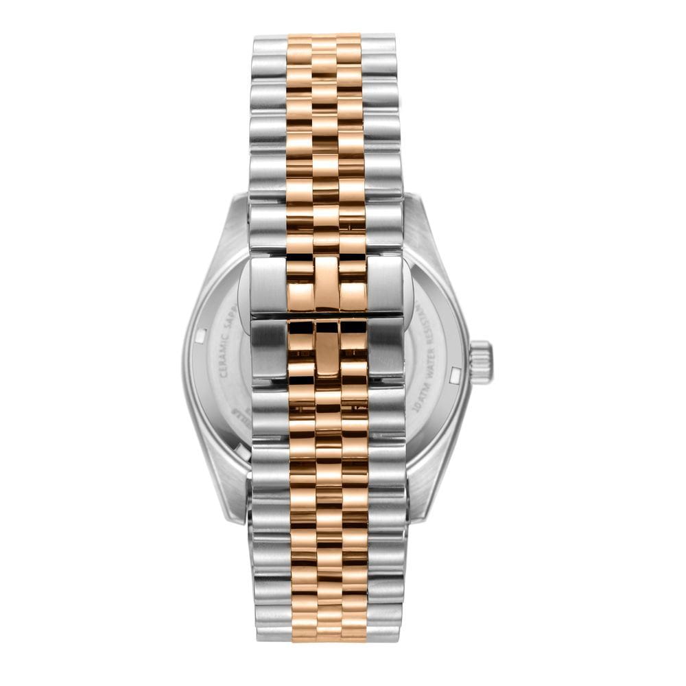 Точность хода гарантируется кварцевым механизмом высокой точности , который не требует регулярного подзавода и обеспечивает стабильную работу в любых условиях. На циферблате удобно расположено окошко даты в положении 3 часа , что делает информацию максимально доступной.БезельБезельВнешний ободок, закрепляющий стекло. В спортивных часах так называется поворотное кольцо с делениями на циферблате, выполняет роль таймера – замеряет отрезки времени на шкале. Неподвижный безель – элемент декора. Однонаправленно вращающийся безель на дайверских часах позволяет фиксировать моменты погружения и выныривания на поверхность. с PVD-покрытиемPVDУльтратонкое покрытие наносится в технике вакуумного напыления, сочетает в себе нитрид титана особой прочности со слоем золота или оксида хрома. Несёт в себе декоративную или защитную функцию..