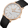 Оснащённая кварцевым механизмом, эта модель обеспечивает высокую точность измерения времени. Чёрный кожаный ремешок с классической застёжкой создаёт комфортные условия для носки и гарантирует надёжную фиксацию на запястье.