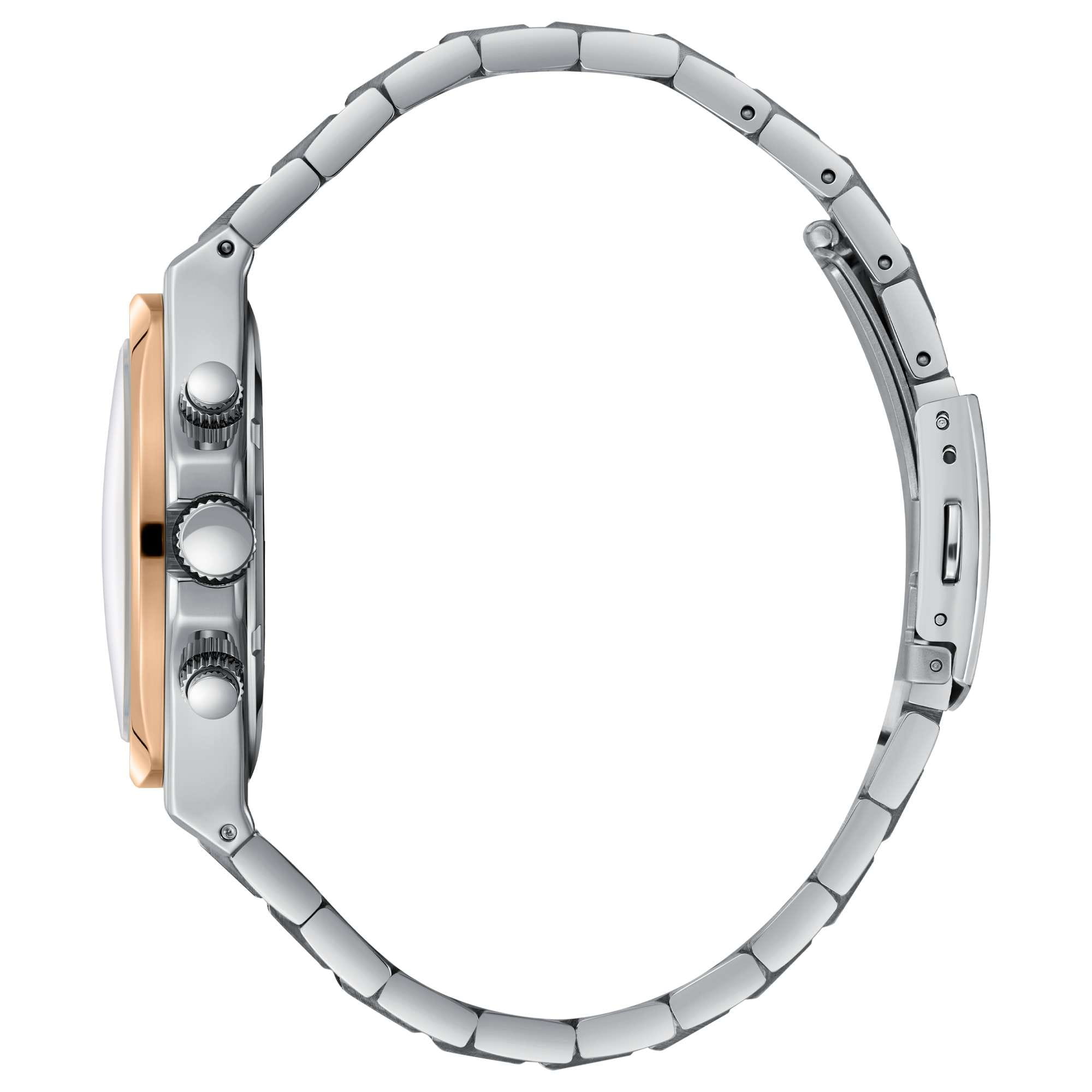 Американские мужские часы Beverly Hills Polo Club BP3777X.360 - это стильный мужской аксессуар, который сочетает элегантный дизайн и практичность. Корпус выполнен из нержавеющей стали диаметром 42 мм, что обеспечивает долговечность и утончённый внешний вид. Надежное минеральное стеклоМинеральное стеклоМинеральное стекло представляет собой искусственно выращенный минерал кварца. Такое стекло отличается особой устойчивостью к повреждениям и царапинам. Уступает по некоторым качествам сапфировому стеклу. с сапфировым покрытием защищает циферблат от царапин и обеспечивает долговечность. Модель оснащена кварцевым механизмом, обеспечивающим высокую точность хода. Неподвижный безельБезельВнешний ободок, закрепляющий стекло. В спортивных часах так называется поворотное кольцо с делениями на циферблате, выполняет роль таймера – замеряет отрезки времени на шкале. Неподвижный безель – элемент декора. Однонаправленно вращающийся безель на дайверских часах позволяет фиксировать моменты погружения и выныривания на поверхность. с IP-покрытиемIP-покрытиеМетод ионного напыления. Демонстрирует повышенную устойчивость к истиранию, окислению и химическим веществам. Под воздействием высокого давления и температуры около 1500°C молекулы металла надёжно соединяются с частицами корпуса часов. цвета розового золота. Стальной браслет на раскладной застёжкеРаскладная застёжкаТакой тип застёжки используется только на браслетах из металла. Она никогда не раскрывается полностью, происходит разделение на 2 и более частей. Раскладывающая застёжка снизит вероятность потери часов к минимуму. обеспечивает комфортное ношение. Функциональность модели расширена за счёт индикации дня недели, с дополнительным 24-х часовым индикатором. Стрелки с люминесцентным покрытиемЛюминесцентное покрытиеПозволяет считывать показания времени в темноте. Производители наносят на стрелки, часовые индексы, безель или поверхность циферблата светонакопительный состав, дающий холодное свечение. позволяют легко считывать время даже в условиях недостаточного освещения. Водозащита 50 метров позволит защитить корпус от случайных брызг или капель дождя. Эта модель – отличный выбор для тех, кто ищет сочетание стиля, качества и функциональности. Часы станут не только полезным аксессуаром, но и выразительным элементом вашего имиджа.