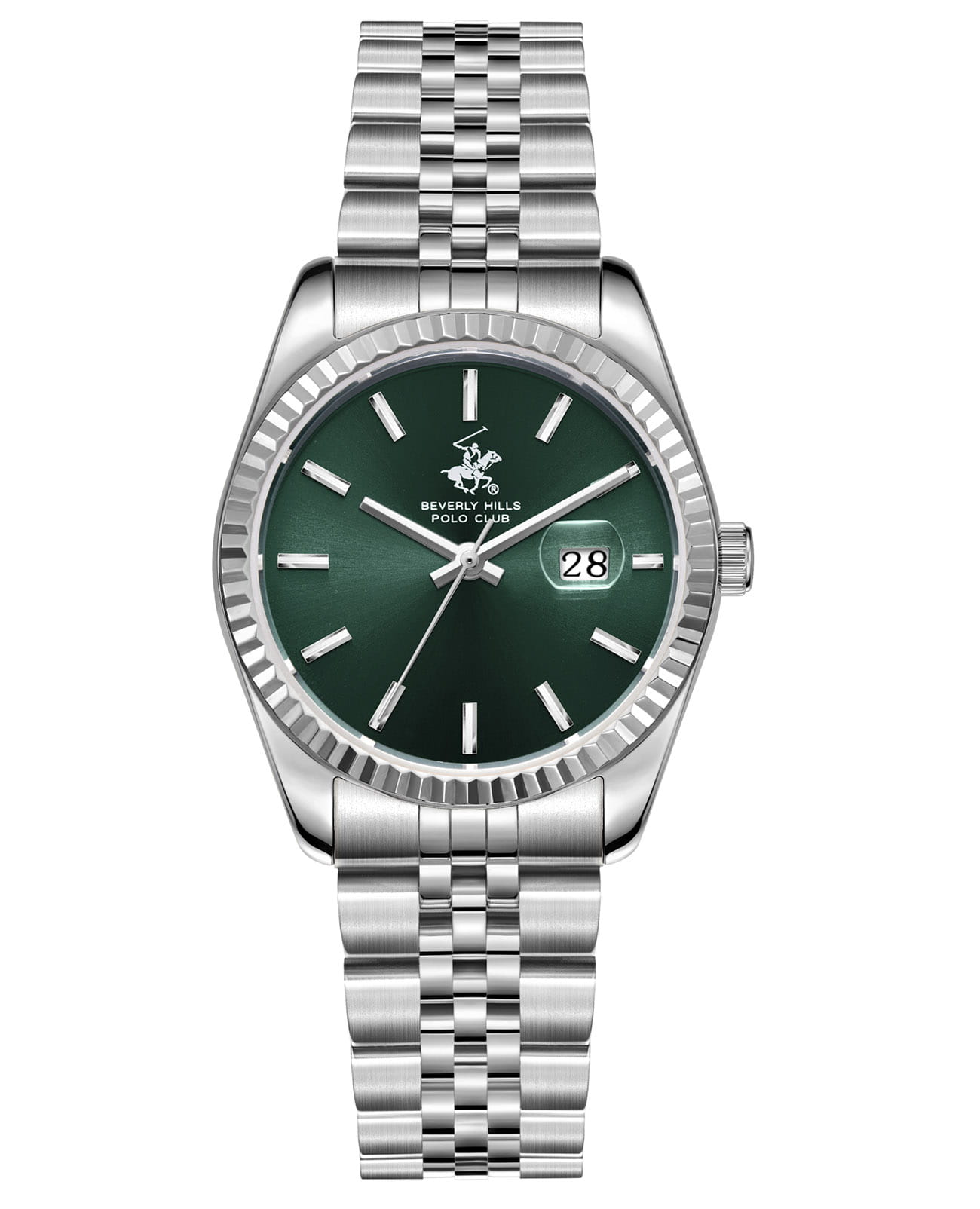 Женские кварцевые часы Beverly Hills Polo Club — это отражение утончённости и изысканного стиля. Корпус диаметром 31 мм выполнен из стали 316L. Циферблат зелёного цвета оформлен штрихами, стрелками и окошком даты в положении 3 часов. Циферблат защищён минеральным стекломМинеральное стеклоМинеральное стекло представляет собой искусственно выращенный минерал кварца. Такое стекло отличается особой устойчивостью к повреждениям и царапинам. Уступает по некоторым качествам сапфировому стеклу. с сапфировым покрытием. Часы оснащены стальным браслетом из стали 316L на застёжке «бабочка» с кнопкамиЗастёжка "бабочка"Такой вид застёжки дополняется предохранителями, помогающими избежать случайного раскрытия браслета. Обладают изящным исполнением. . Водонепроницаемость 30 м позволяет использовать часы в повседневных условиях. Идеальный выбор для тех, кто ценит американское качество и универсальный дизайн.