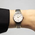 Женские наручные часы Boccia Titanium 3158-02 с надёжным кварцевым механизмом. Корпус и браслет часов изготовлены из титана с частичным PVD-покрытиемPVDУльтратонкое покрытие наносится в технике вакуумного напыления, сочетает в себе нитрид титана особой прочности со слоем золота или оксида хрома. Несёт в себе декоративную или защитную функцию.. Стальной браслет на раскладной застёжкеРаскладная застёжкаТакой тип застёжки используется только на браслетах из металла. Она никогда не раскрывается полностью, происходит разделение на 2 и более частей. Раскладывающая застёжка снизит вероятность потери часов к минимуму.. Окошко даты находится в положении 6 часов. Класс водозащиты: 50 метров, позволит защитить корпус от случайных брызг или капель дождя. Сапфировое стеклоСапфировое стеклоПрочный и надёжный материал из кристалла сапфира синтетического происхождения, характеризующийся особой твёрдостью и устойчивостью к царапинам и повреждениям. с антибликовым покрытием, устойчивое к мелким механическим повреждениям.