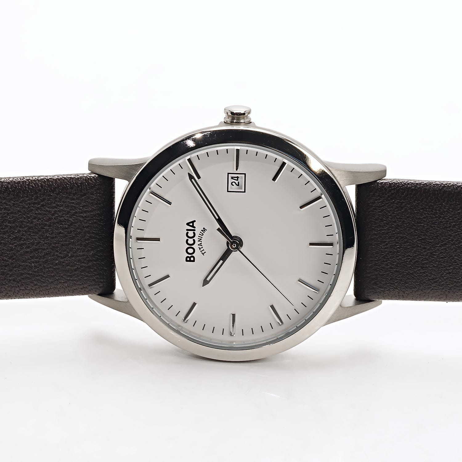 Женские немецкие титановые часы Boccia Titanium Circle-Oval 3180-01, кварцевый механизм с высокой точностью. Минеральное стеклоМинеральное стеклоМинеральное стекло представляет собой искусственно выращенный минерал кварца. Такое стекло отличается особой устойчивостью к повреждениям и царапинам. Уступает по некоторым качествам сапфировому стеклу. устойчивое к появлению царапин, обладающее высокой прозрачностью. Корпус изготовлен из титана. Метки в виде арабских цифр. Класс водозащиты: 50 метров, позволит защитить корпус от случайных брызг или капель дождя. Кожаный ремешок на стандартной застежке. Стрелки и метки с люминесцентным покрытиемЛюминесцентное покрытиеПозволяет считывать показания времени в темноте. Производители наносят на стрелки, часовые индексы, безель или поверхность циферблата светонакопительный состав, дающий холодное свечение..