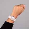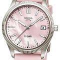 Эти женственные часы мгновенно привнесут нотку изысканности в любой ваш наряд! Легкий титановый корпус подчеркивает элегантность модели, а перламутровый циферблат с изящными штрихами-метками придает часам особый шарм. Стрелки и метки покрыты люминесцентным покрытиемЛюминесцентное покрытиеПозволяет считывать показания времени в темноте. Производители наносят на стрелки, часовые индексы, безель или поверхность циферблата светонакопительный состав, дающий холодное свечение., который мягко светится в темноте, освещая путь даже в самых загадочных сумерках. Минеральное стеклоМинеральное стеклоМинеральное стекло представляет собой искусственно выращенный минерал кварца. Такое стекло отличается особой устойчивостью к повреждениям и царапинам. Уступает по некоторым качествам сапфировому стеклу.. Окошко даты, расположенное на отметке «три часа», всегда напомнит о важном событии дня. Завершающим аккордом служит мягкий каучуковый ремешок с классической застежкой, обеспечивающий комфорт и надежность в носке. 100 метров, позволит плавать, нырять и заниматься другими водными видами спорта.