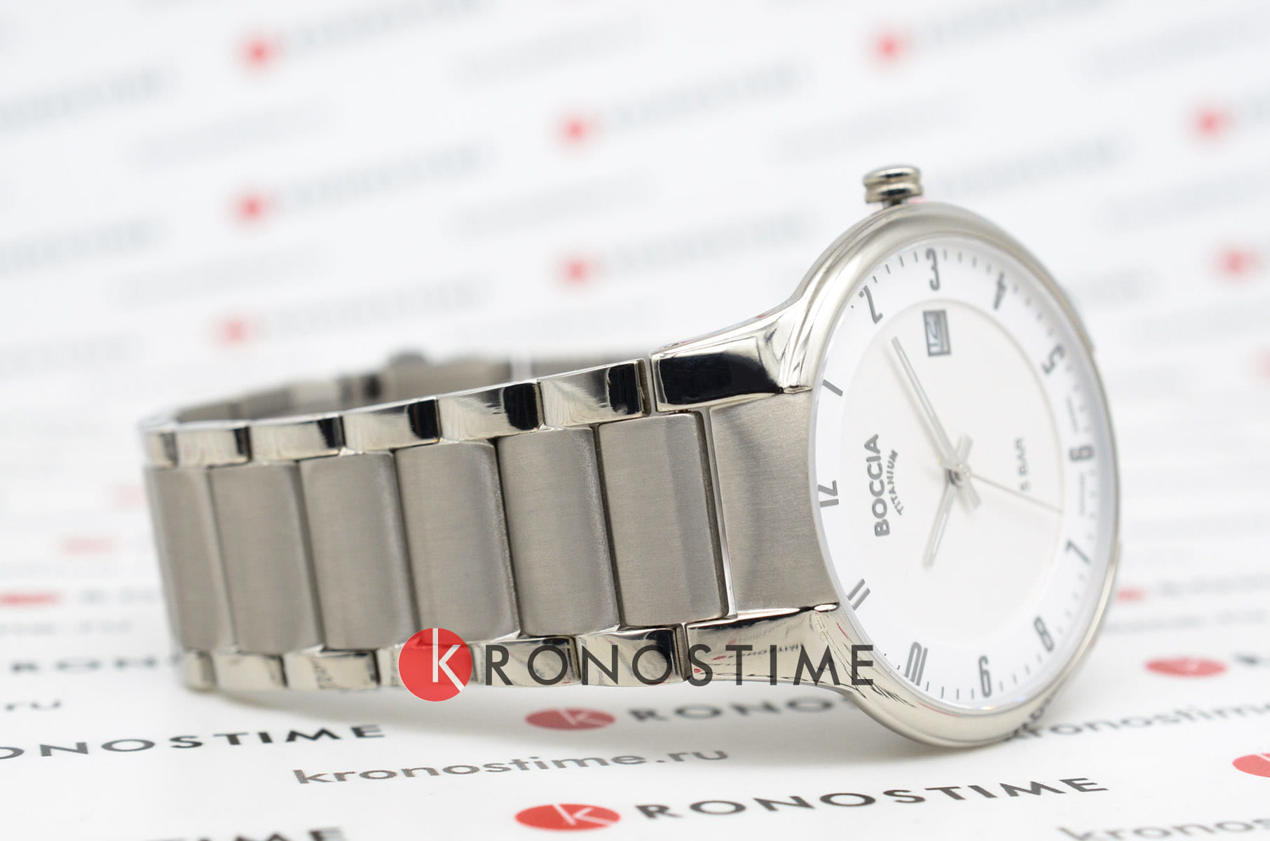 Мужские немецкие титановые часы Boccia Titanium 3629-02, кварцевый механизм с высокой точностью. Сапфировое стеклоСапфировое стеклоПрочный и надёжный материал из кристалла сапфира синтетического происхождения, характеризующийся особой твёрдостью и устойчивостью к царапинам и повреждениям. устойчивое к появлению царапин, обладающее высокой прозрачностью. Корпус изготовлен из титана. Стрелки с люминесцентным покрытиемЛюминесцентное покрытиеПозволяет считывать показания времени в темноте. Производители наносят на стрелки, часовые индексы, безель или поверхность циферблата светонакопительный состав, дающий холодное свечение.. Окошко даты в положении 3 часов. Класс водозащиты: 50 метров, позволит защитить корпус от случайных брызг или капель дождя. Браслет из титана на раскладной застёжкеРаскладная застёжкаТакой тип застёжки используется только на браслетах из металла. Она никогда не раскрывается полностью, происходит разделение на 2 и более частей. Раскладывающая застёжка снизит вероятность потери часов к минимуму..