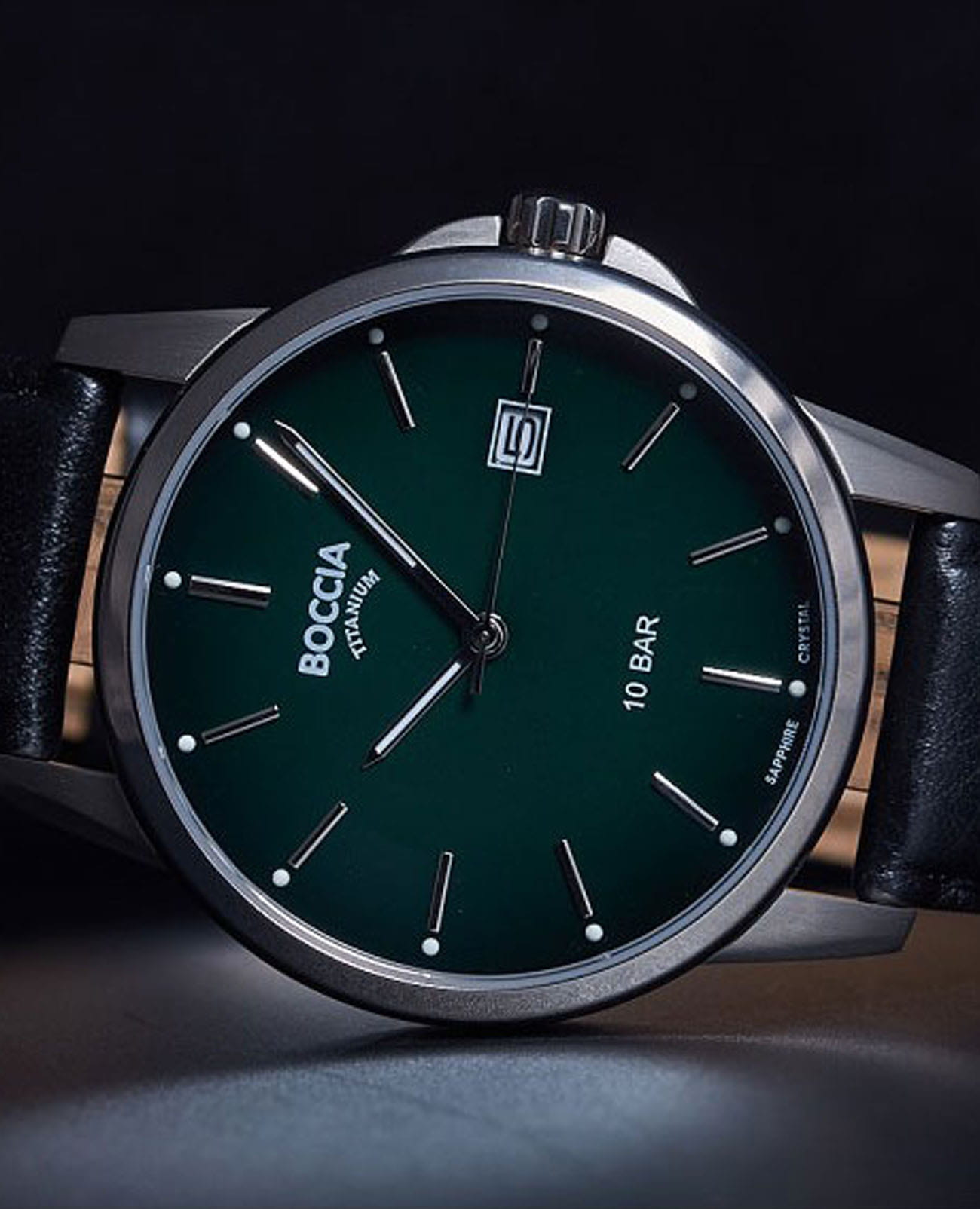 Мужские немецкие титановые часы Boccia Titanium Circle-Oval 3633-02, кварцевый механизм с высокой точностью. Сапфировое стеклоСапфировое стеклоПрочный и надёжный материал из кристалла сапфира синтетического происхождения, характеризующийся особой твёрдостью и устойчивостью к царапинам и повреждениям. устойчивое к появлению царапин, обладающее высокой прозрачностью. Корпус изготовлен из титана. Стрелки с люминесцентным покрытиемЛюминесцентное покрытиеПозволяет считывать показания времени в темноте. Производители наносят на стрелки, часовые индексы, безель или поверхность циферблата светонакопительный состав, дающий холодное свечение.. Окошко даты в положении 3 часов. Класс водозащиты: 100 метров, позволит плавать, нырять и заниматься другими водными видами спорта. Кожаный браслет на стандартной застежке.