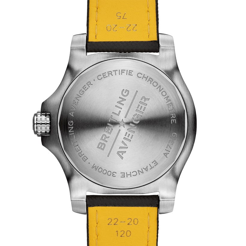 Смелый дизайн, чрезвычайно прочная конструкция и ударопрочность стали отличительными чертами модели Avenger Automatic 45 Seawolf – часов для пилотов, специально разработанных для приключений на глубине океана (до 300 бар – 3000 м). Обладая потрясающими показателями водонепроницаемости, они отлично подходят как для полетов высоко над землей, так и для погружения в глубину океанов. Благодаря наличию массивного безеля и особой формы головки подзавода манипуляции с часами Avenger Automatic 45 Seawolf можно удобно выполнять, не снимая перчатки.