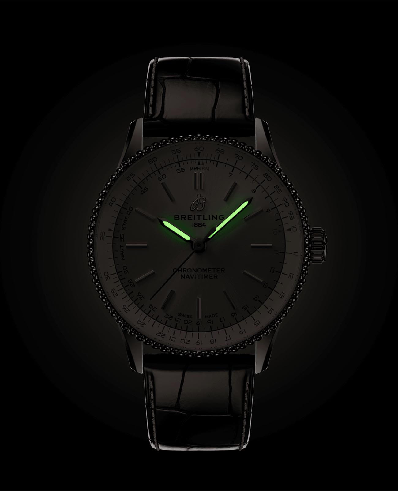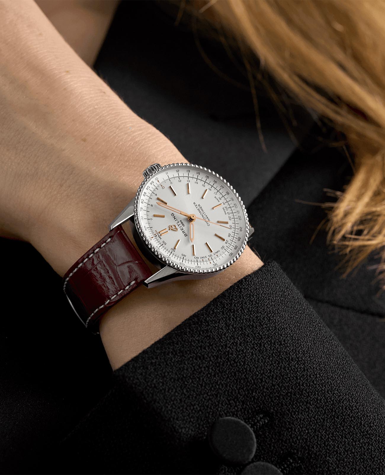 Швейцарские унисекс часы-хронометр Breitling Navitimer Automatic 36 A17327211G1P1, механический механизм (автоматический калибр) с высокой точностью. Сапфировое стеклоСапфировое стеклоПрочный и надёжный материал из кристалла сапфира синтетического происхождения, характеризующийся особой твёрдостью и устойчивостью к царапинам и повреждениям. устойчивое к появлению царапин, обладающее высокой прозрачностью. Класс водозащиты: 30 метров, позволит защитить корпус от случайных брызг или капель дождя. Корпус часов изготовлен из нержавеющей стали. Ремешок из кожи аллигатора с раскладной застёжкойРаскладная застёжкаТакой тип застёжки используется только на браслетах из металла. Она никогда не раскрывается полностью, происходит разделение на 2 и более частей. Раскладывающая застёжка снизит вероятность потери часов к минимуму.. Часы оснащены логарифмической линейкой. Стрелки с люминесцентным покрытиемЛюминесцентное покрытиеПозволяет считывать показания времени в темноте. Производители наносят на стрелки, часовые индексы, безель или поверхность циферблата светонакопительный состав, дающий холодное свечение..