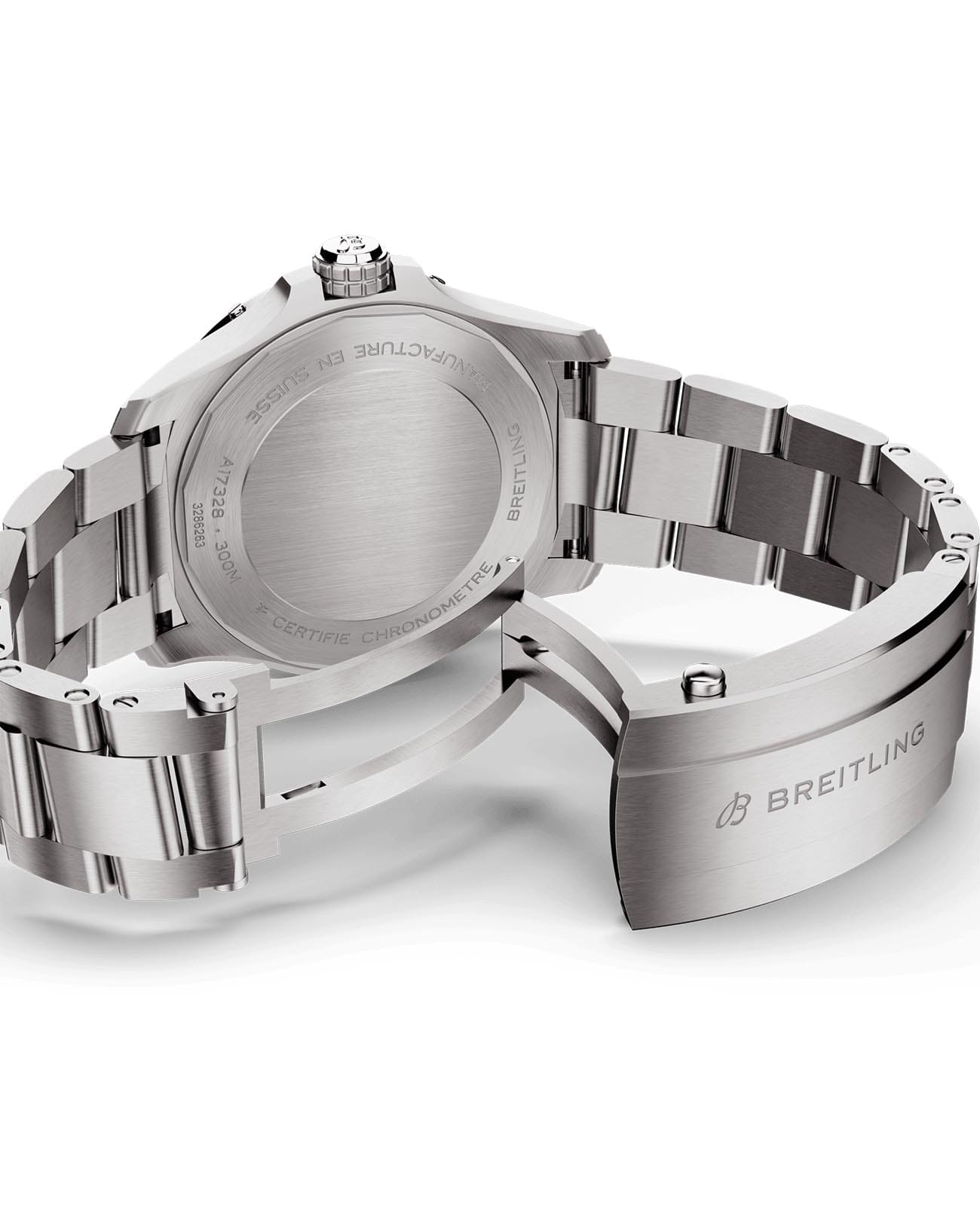 Мужские наручные часы Breitling Avenger Automatic 42 A17328101B1A1 с надёжным автоматическим механизмом. Сапфировое стеклоСапфировое стеклоПрочный и надёжный материал из кристалла сапфира синтетического происхождения, характеризующийся особой твёрдостью и устойчивостью к царапинам и повреждениям. повышенной прозрачности, устойчивое к мелким механическим повреждениям. Вращающийся безельБезельВнешний ободок, закрепляющий стекло. В спортивных часах так называется поворотное кольцо с делениями на циферблате, выполняет роль таймера – замеряет отрезки времени на шкале. Неподвижный безель – элемент декора. Однонаправленно вращающийся безель на дайверских часах позволяет фиксировать моменты погружения и выныривания на поверхность.. Окошко даты находится в положении 3 часа. Стрелки и метки с люминесцентным покрытиемЛюминесцентное покрытиеПозволяет считывать показания времени в темноте. Производители наносят на стрелки, часовые индексы, безель или поверхность циферблата светонакопительный состав, дающий холодное свечение.. Стальной браслет на стандартной застёжке. Класс водозащиты: 300 метров, позволит плавать, нырять и заниматься другими водными видами спорта.