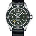 Эта модель выполнена в прочном корпусе из нержавеющей стали диаметром 44 мм с матовым зеленым циферблатом. Она поставляется в комплекте с зеленым цельным ремешком из волокна ECONYL®, изготовленного из нейлоновых отходов, извлекаемых из океана – например, из рыболовных сетей. Эта модель не только с достоинством выдержит погружение на морские глубины (до 100 бар/1000 метров) – часы Superocean Automatic 44 Outerknown равным образом понравятся и тем, чьи амбиции лежат ближе к берегу.