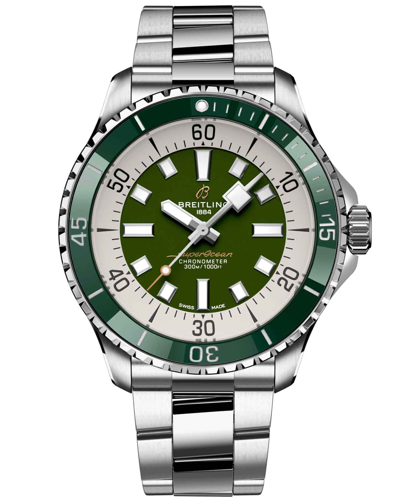 Мужские водонепроницаемые швейцарские часы Breitling Superocean Automatic 44 A17376A31L1A1, механический механизм (автоматический калибр) с высокой точностью. Сапфировое стеклоСапфировое стеклоПрочный и надёжный материал из кристалла сапфира синтетического происхождения, характеризующийся особой твёрдостью и устойчивостью к царапинам и повреждениям. устойчивое к появлению царапин, обладающее высокой прозрачностью. Класс водозащиты: 300 метров, позволит плавать, нырять и заниматься другими водными видами спорта. Корпус часов изготовлен из стали. Стальной браслет с раскладной застёжкойРаскладная застёжкаТакой тип застёжки используется только на браслетах из металла. Она никогда не раскрывается полностью, происходит разделение на 2 и более частей. Раскладывающая застёжка снизит вероятность потери часов к минимуму.. Стрелки и метки с люминесцентным покрытиемЛюминесцентное покрытиеПозволяет считывать показания времени в темноте. Производители наносят на стрелки, часовые индексы, безель или поверхность циферблата светонакопительный состав, дающий холодное свечение.. Широкие стрелки и индексы с люминесцентным покрытиемЛюминесцентное покрытиеПозволяет считывать показания времени в темноте. Производители наносят на стрелки, часовые индексы, безель или поверхность циферблата светонакопительный состав, дающий холодное свечение. обеспечивают легкую читаемость под водой. БезельБезельВнешний ободок, закрепляющий стекло. В спортивных часах так называется поворотное кольцо с делениями на циферблате, выполняет роль таймера – замеряет отрезки времени на шкале. Неподвижный безель – элемент декора. Однонаправленно вращающийся безель на дайверских часах позволяет фиксировать моменты погружения и выныривания на поверхность. из стали с керамической инкрустацией, защищенный от царапин, никогда не изнашивается и не выцветает. Лучше всего то, что это больше не просто часы для дайвинга — занимайтесь с ними серфингом, плавайте с ними, заходите с ними в пляжный бар, а затем надевайте их на ужин. Superocean идеально сочетает ностальгию по своему наследию со свежим внешним видом.