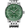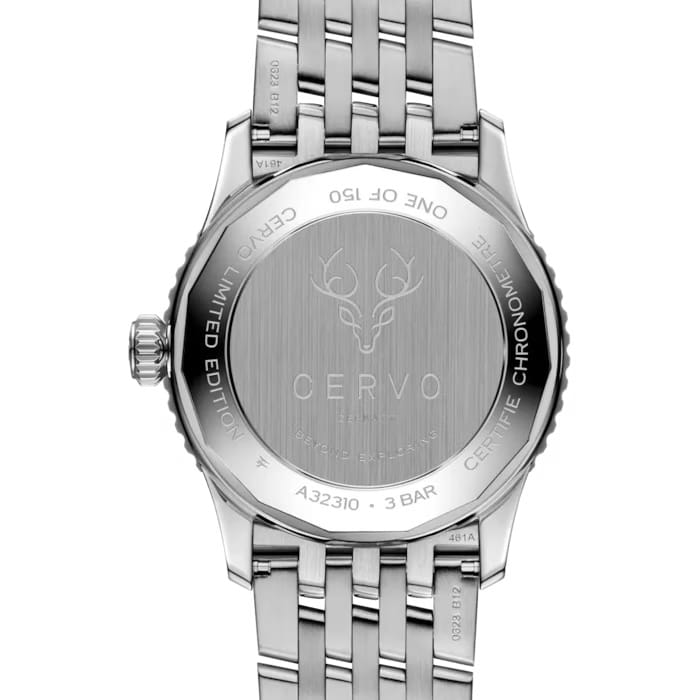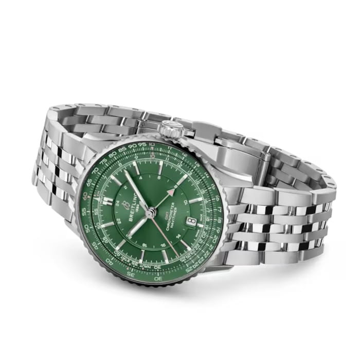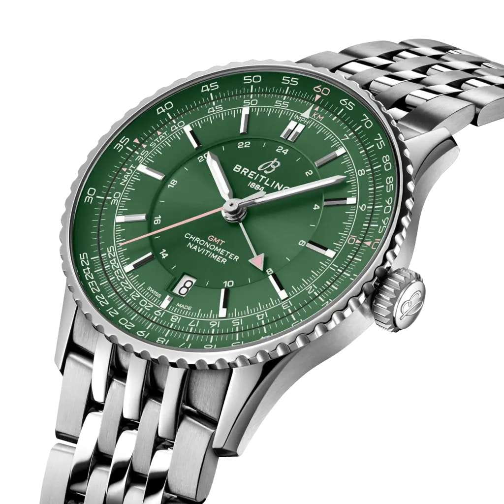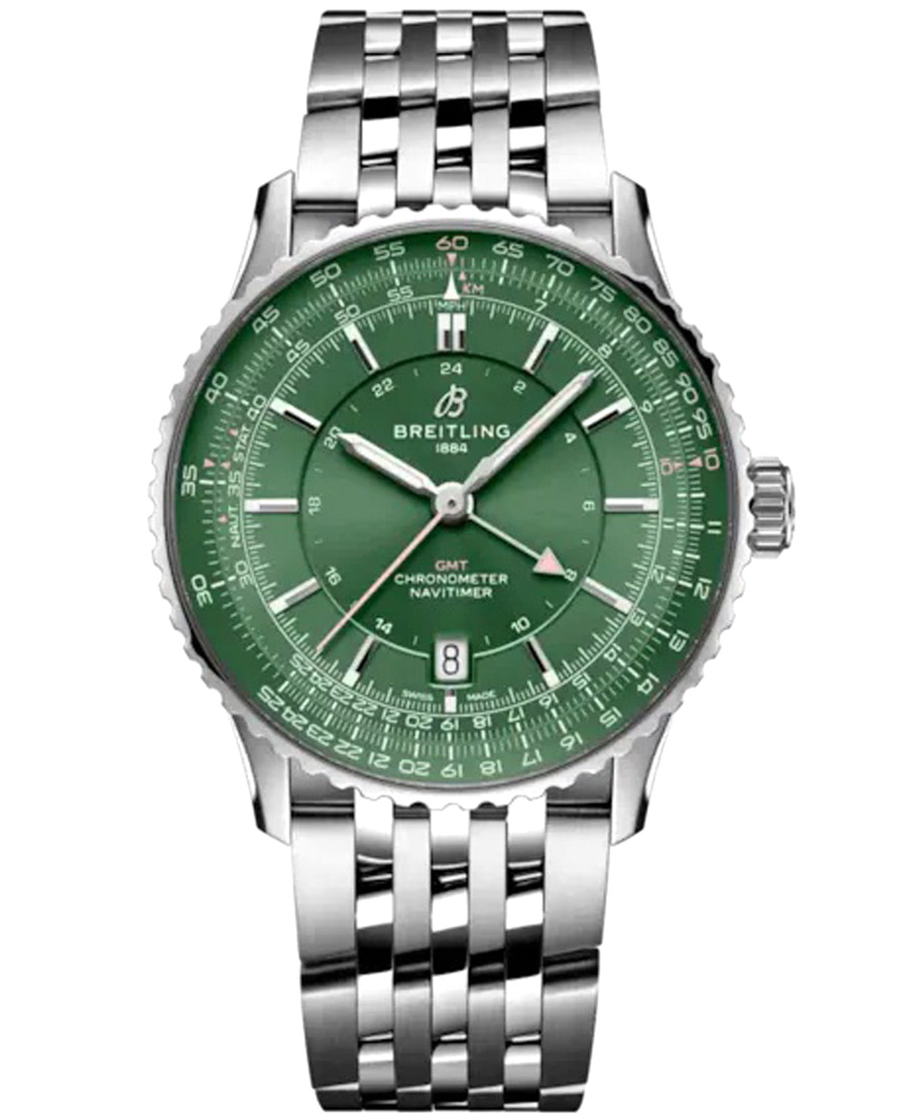 Самые универсальные часы Breitling Navitimer Automatic GMT 41 A323102A1L1A1 — идеально для путешествий. Они входят в списки величайших часов всех времен по версии коллекционеров. Часы, которые появились в 1952 году как инструмент для пилотов, со временем стали значить нечто очень важное для каждого, кто брал их с собой в путешествие. Модель Navitimer Automatic GMT 41 CERVO Edition выпущена в количестве 150 экземпляров — в честь 15-летия горнолыжного курорта. Функция GMTGMTОтображение времени второго часового пояса.Такая функция особенно актуальна для путешественников и бизнесменов,которые общаются с людьми из разных стран,теперь вы всегда будете знать,какой час у вашего партнёра или близкого человека. с индикацией второго часового поясаВторой часовой поясФункция, позволяющая отображать время двух часовых поясов одновременно. делает часы идеальным спутником в любом путешествии. Часы выпущены ограниченной серией в корпусе из нержавеющей стали диаметром 41 мм и браслете Navitimer из нержавеющей стали на застёжке-бабочке с кнопкамиЗастёжка "бабочка"Такой вид застёжки дополняется предохранителями, помогающими избежать случайного раскрытия браслета. Обладают изящным исполнением. . Циферблат - CERVO green, а стрелка GMT - CERVO glow. На задней крышке корпуса выгравированы надпись ограниченного выпуска “Один из 150”, логотип CERVO и руководящий принцип курорта “ЗА ПРЕДЕЛАМИ ИЗУЧЕНИЯ”. Выпуклое сапфировое стеклоСапфировое стеклоПрочный и надёжный материал из кристалла сапфира синтетического происхождения, характеризующийся особой твёрдостью и устойчивостью к царапинам и повреждениям. с антибликовым покрытиемАнтибликовое покрытиеСлой оксида металла в 0,13-0,3 микрон, благодаря которому стекло часов не бликует и не отражает свет. Антибликовое покрытие уменьшает отражение света в 10 раз, обеспечивая отличную читаемость показателей циферблата. устойчивое к появлению царапин, обладающее высокой прозрачностью и антибликовым покрытием с обеих сторон. Класс водозащиты: 30 метров позволит защитить корпус от случайных брызг или капель дождя. Стрелки на циферблате имеют люминесцентное покрытиеЛюминесцентное покрытиеПозволяет считывать показания времени в темноте. Производители наносят на стрелки, часовые индексы, безель или поверхность циферблата светонакопительный состав, дающий холодное свечение. Super-LumiNova® позволяющее легко определять время даже в темноте. Окошко даты находится в положении 6 часов. Прочная конструкция часов и высокопроизводительный механизм делают их идеальным спутником для любителей активного отдыха.