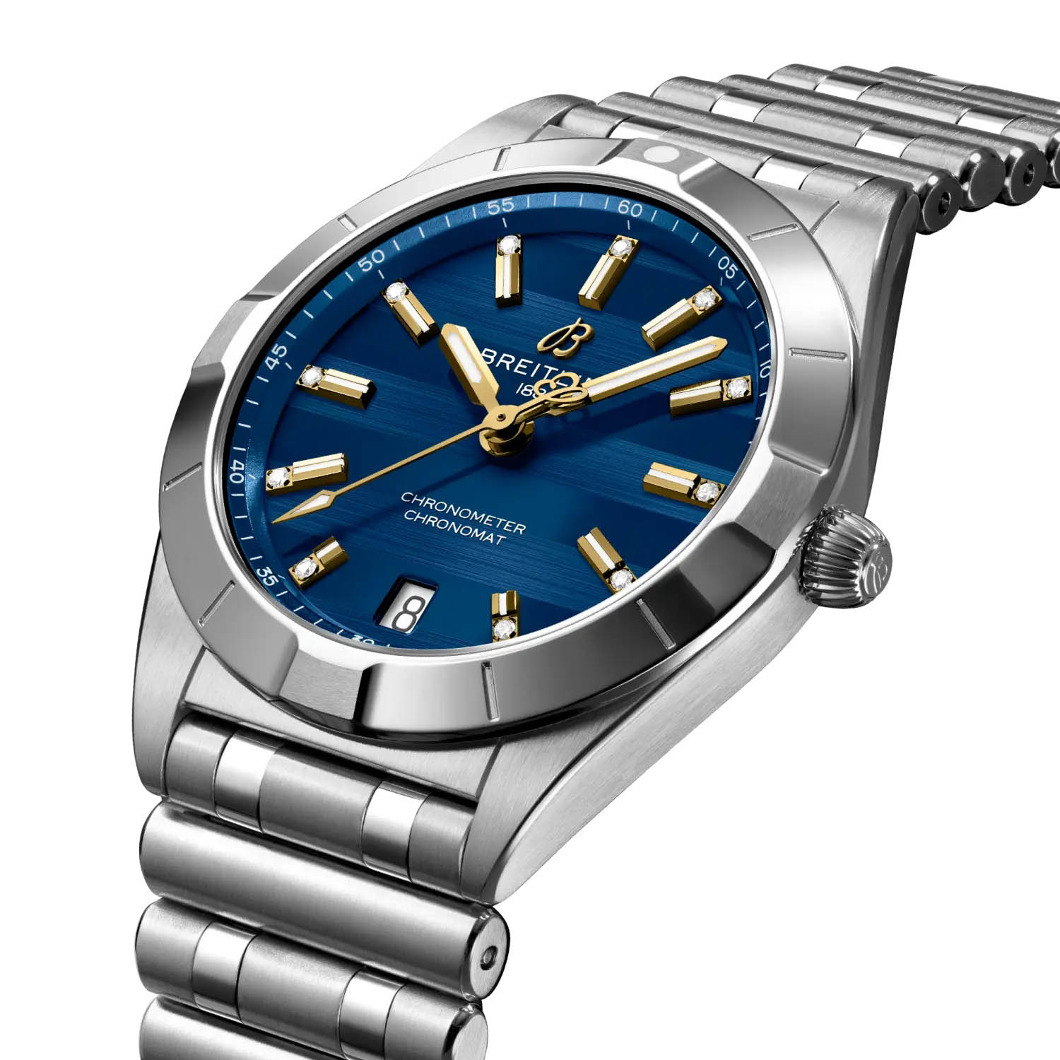 Женские кварцевые часы Breitling Chronomat 32 A773106A1C1A1 — это изысканный аксессуар, сочетающий в себе классический дизайн и современные технологии. Модель выполнена из нержавеющей стали с диаметром корпуса 32 мм и толщиной 8,54 мм, что делает её утончённой и лаконичной. Циферблат синего цвета дополнен 11 бриллиантами круглой огранки, придающими модели роскошный внешний вид. Защиту механизма обеспечивает сапфировое стеклоСапфировое стеклоПрочный и надёжный материал из кристалла сапфира синтетического происхождения, характеризующийся особой твёрдостью и устойчивостью к царапинам и повреждениям. с антибликовым покрытиемАнтибликовое покрытиеСлой оксида металла в 0,13-0,3 микрон, благодаря которому стекло часов не бликует и не отражает свет. Антибликовое покрытие уменьшает отражение света в 10 раз, обеспечивая отличную читаемость показателей циферблата., устойчивым к повреждениям. Браслет из нержавеющей стали оснащён застёжкой «бабочка» с кнопкамиЗастёжка "бабочка"Такой вид застёжки дополняется предохранителями, помогающими избежать случайного раскрытия браслета. Обладают изящным исполнением. , обеспечивающей комфорт и надёжную фиксацию на запястье. Часы оснащены кварцевым механизмом Breitling 77, обеспечивающим точную работу и минимальное обслуживание. Водонепроницаемость позволяет использовать модель при плавании и других водных активностях без глубокого погружения. На задней крышке выгравирован логотип спортивной команды, которой посвящена модель, и надпись «Один из 75». Это лимитированная серия, выпущенная всего 75 экземпляров, что подчёркивает её уникальность. Гарантия 2 года подтверждает качество и долговечность изделия. Эти часы станут универсальным аксессуаром для тех, кто ценит сочетание стиля, функциональности и швейцарского мастерства — идеальный выбор для повседневной носки и торжественных случаев.