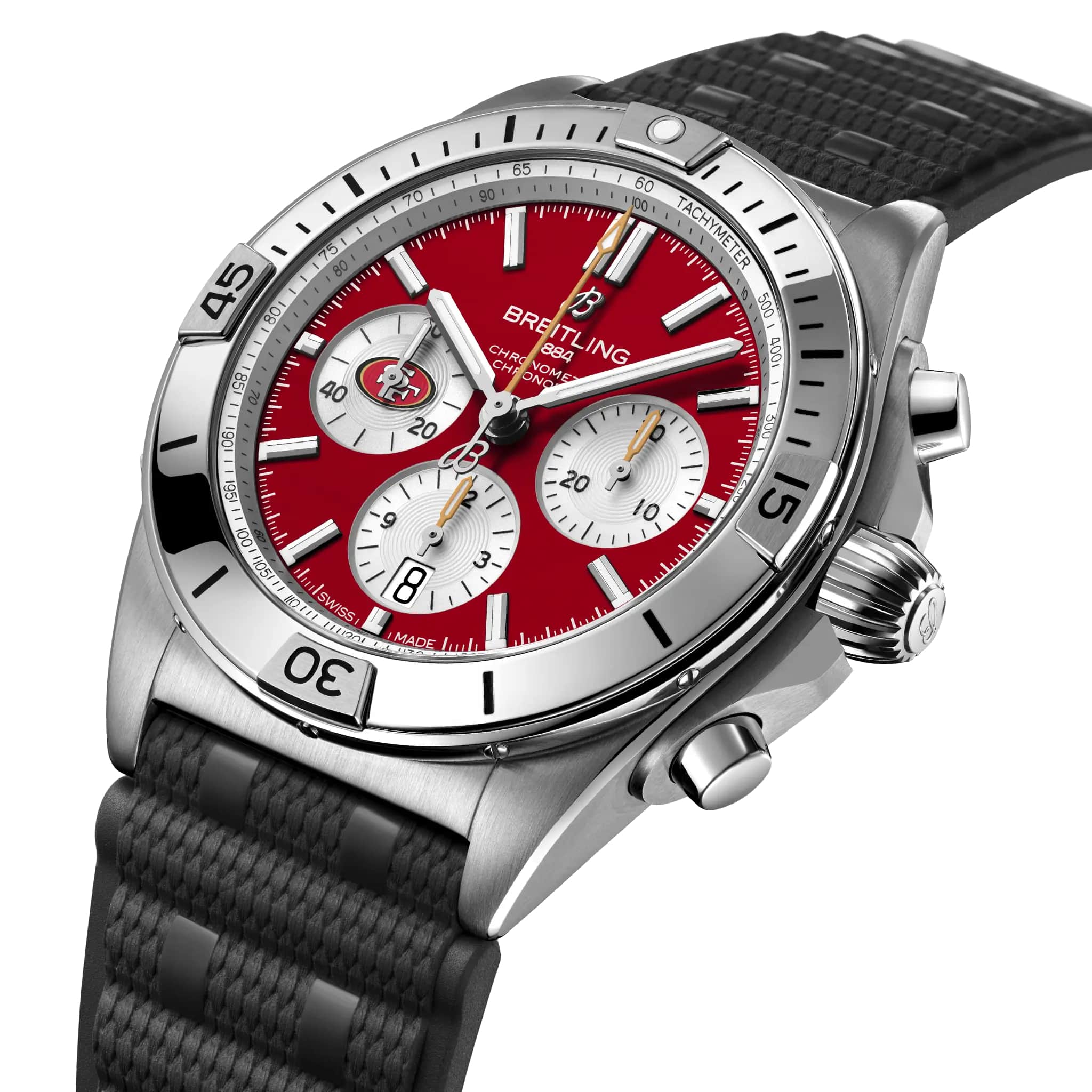 Швейцарские механические часы Breitling Chronomat B01 42 NFL San Francisco 49ers Edition AB01342B1K1S1 с хронографом