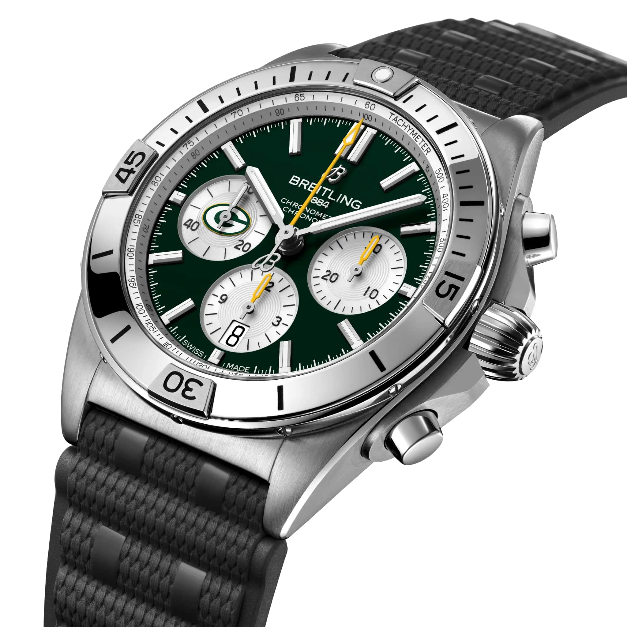 Швейцарские механические часы Breitling Chronomat B01 42 NFL Green Bay Packers Edition AB01342B1L1S1 с хронографом
