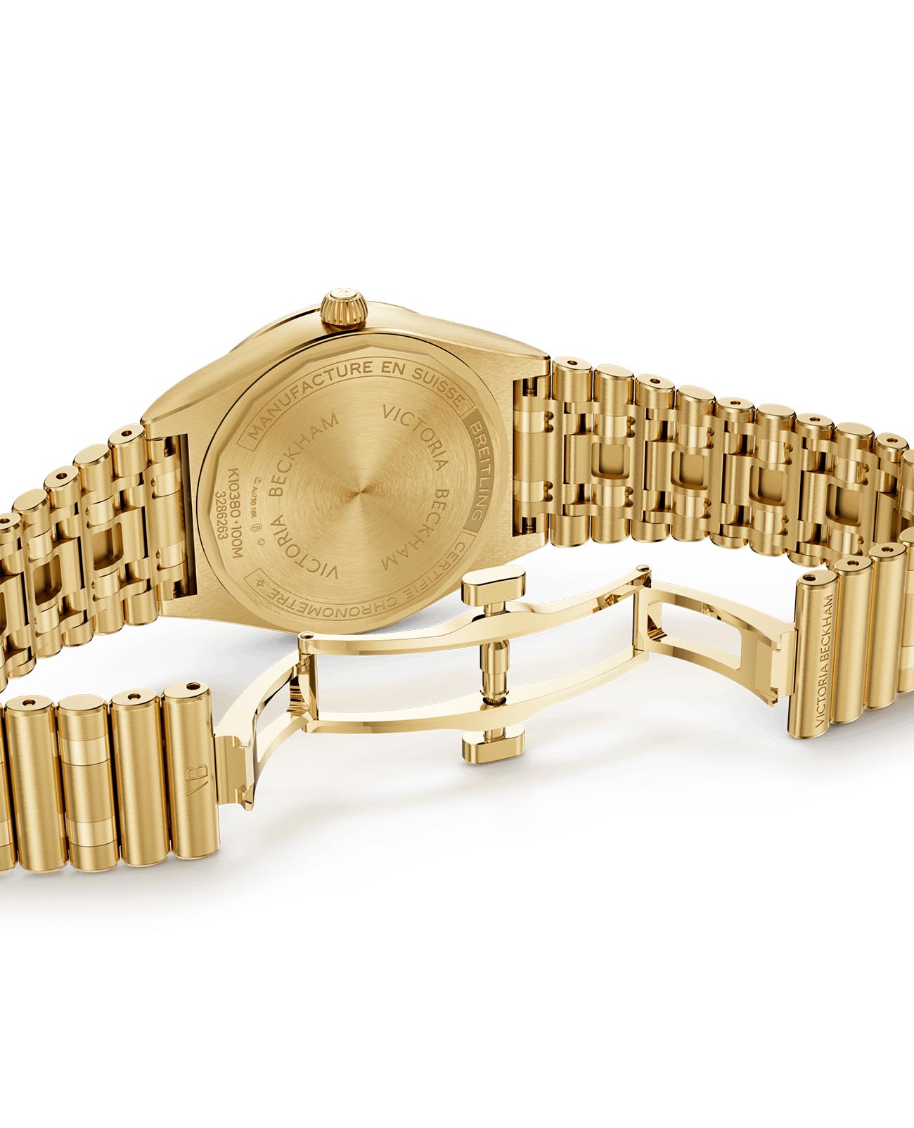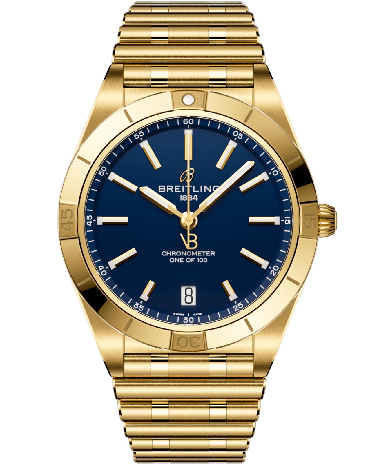 Женские швейцарские часы Breitling Chronomat Automatic 36 Victoria Beckham K103801A1C1K1 с надёжным автоматическим механизмом, выпущенные лимитированной серией всего из 1500 экземпляров в сотрудничестве с модным домом Victoria Beckham. Сапфировое стеклоСапфировое стеклоПрочный и надёжный материал из кристалла сапфира синтетического происхождения, характеризующийся особой твёрдостью и устойчивостью к царапинам и повреждениям. устойчивое к мелким механическим повреждениям. Корпус и браслет часов изготовлены из желтого 18-каратного золота18-каратное золотоОбозначение по каратной системе пробирования, оно показывает, сколько драгоценного металла содержится в изделии. 18 карат - в составе 75% чистого золота, соответствует 750 пробе.