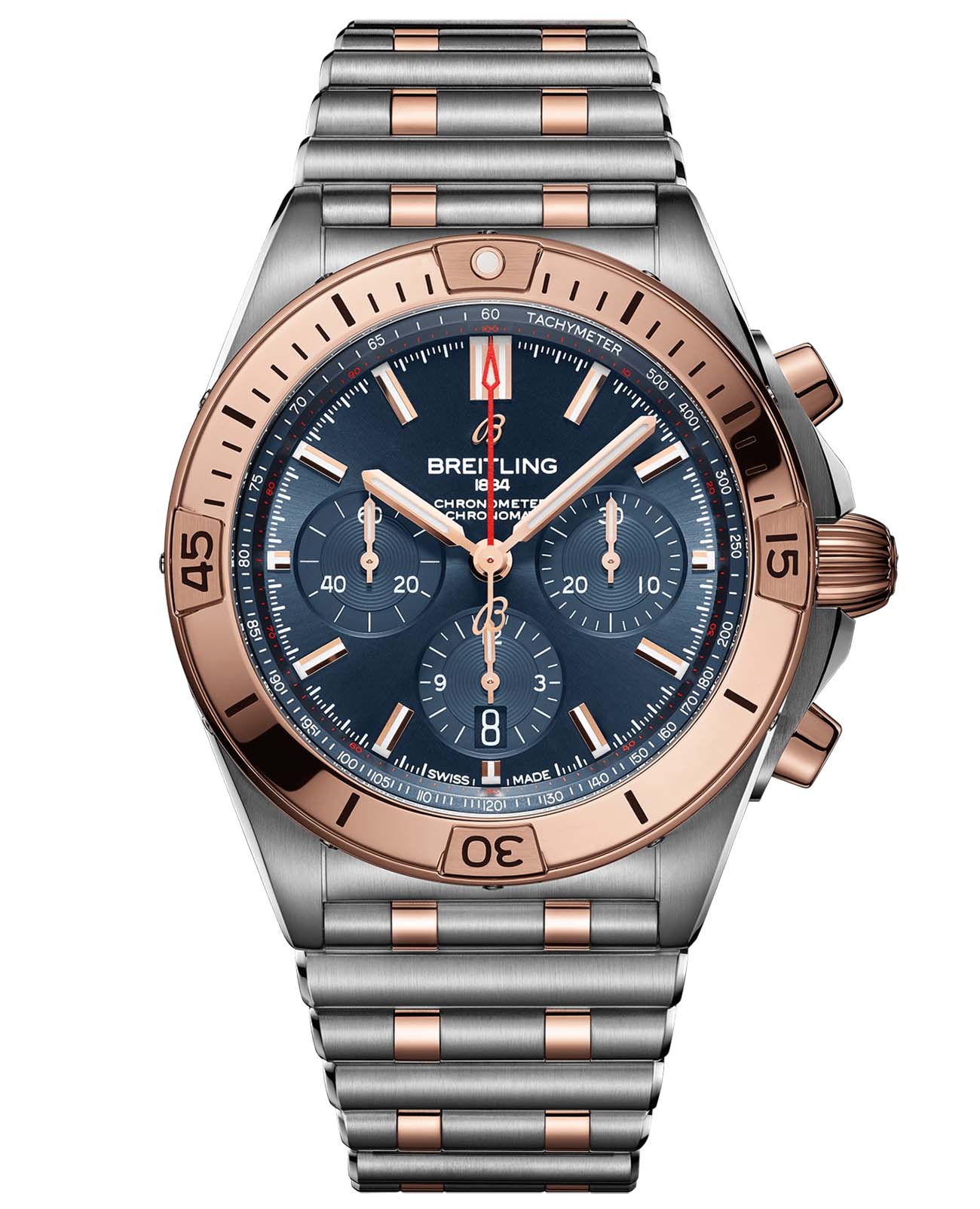Универсальные часы от Breitling на все случаи жизни. Модель Chronomat занимает важное место в истории компании Breitling. Впервые она появилась в 1984 году, когда в моду вошли сверхтонкие кварцевые часы, и на тот момент ставка на механику, пусть даже с идеально выверенными пропорциями, могла показаться излишне рискованной. Современные Chronomat разработаны на основе хронографа Frecce Tricolori, выпущенного в 1983 году в рамках сотрудничества с пилотажной группой ВВС Италии. Их создание, приуроченное к столетию Breitling, ознаменовало возвращение этого механического хронографа в ряды наиболее известных моделей компании, принесших ей мировую славу.