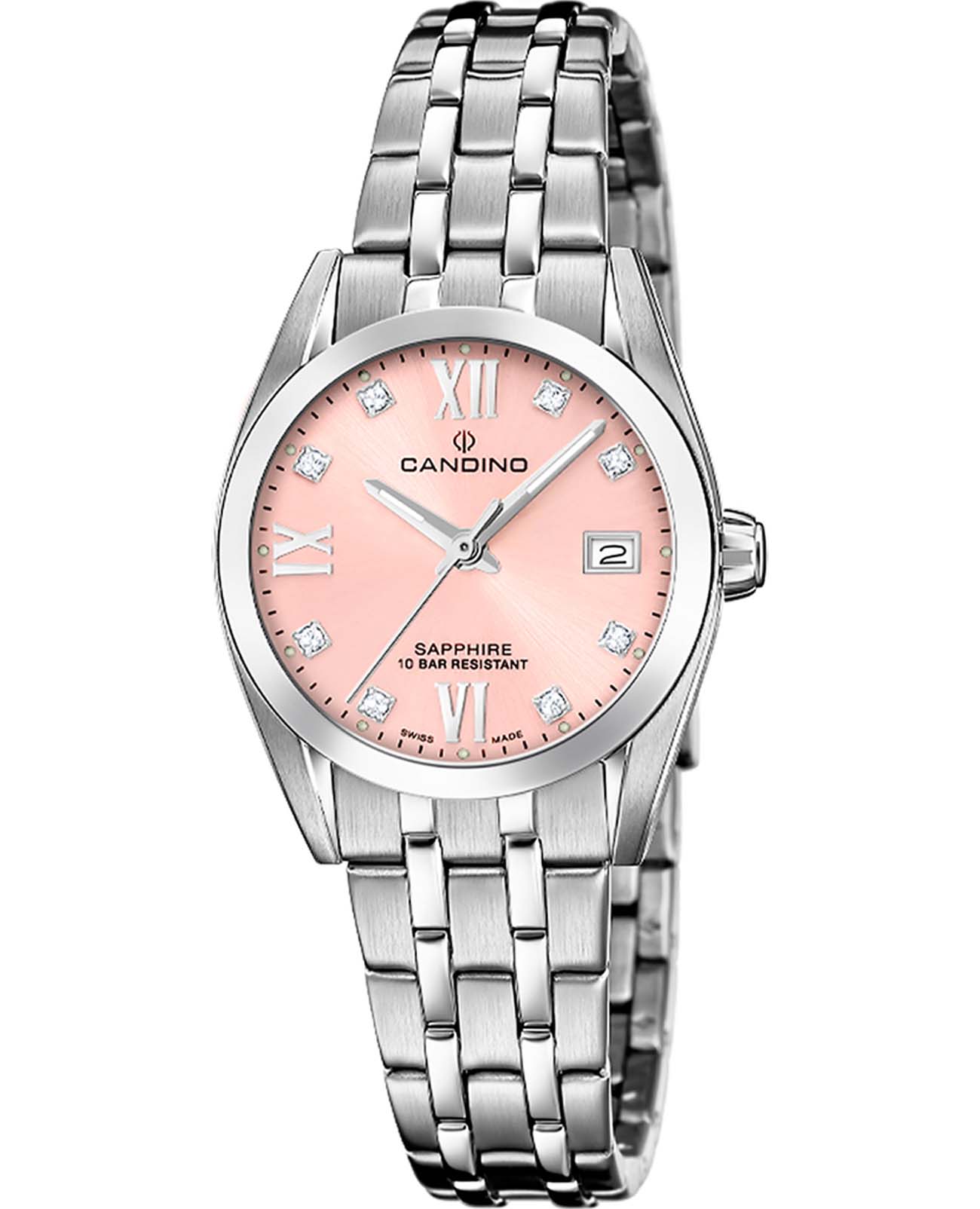 Женские швейцарские часы с сапфировым стекломСапфировое стеклоПрочный и надёжный материал из кристалла сапфира синтетического происхождения, характеризующийся особой твёрдостью и устойчивостью к царапинам и повреждениям. Candino Couple Quartz C4703/E, кварцевый механизм с высокой точностью. Сапфировое стеклоСапфировое стеклоПрочный и надёжный материал из кристалла сапфира синтетического происхождения, характеризующийся особой твёрдостью и устойчивостью к царапинам и повреждениям. устойчивое к появлению царапин, обладающее высокой прозрачностью. Класс водозащиты: 100 метров, позволит плавать, нырять и заниматься другими водными видами спорта. Корпус часов изготовлен из стали. Браслет с раскладной застёжкойРаскладная застёжкаТакой тип застёжки используется только на браслетах из металла. Она никогда не раскрывается полностью, происходит разделение на 2 и более частей. Раскладывающая застёжка снизит вероятность потери часов к минимуму.. Стрелки с люминесцентным покрытиемЛюминесцентное покрытиеПозволяет считывать показания времени в темноте. Производители наносят на стрелки, часовые индексы, безель или поверхность циферблата светонакопительный состав, дающий холодное свечение.. Окошко даты находится в положении 3 часа.