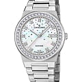 Женские наручные часы Candino Lady Elegance Sparkling Date C4749/1 с надёжным кварцевым механизмом. Корпус и браслет часов изготовлены из нержавеющей стали. Сапфировое стеклоСапфировое стеклоПрочный и надёжный материал из кристалла сапфира синтетического происхождения, характеризующийся особой твёрдостью и устойчивостью к царапинам и повреждениям. повышенной прозрачности, устойчивое к мелким механическим повреждениям. Стальной браслет на раскладной застёжкеРаскладная застёжкаТакой тип застёжки используется только на браслетах из металла. Она никогда не раскрывается полностью, происходит разделение на 2 и более частей. Раскладывающая застёжка снизит вероятность потери часов к минимуму.. Стрелки и метки с люминесцентным покрытиемЛюминесцентное покрытиеПозволяет считывать показания времени в темноте. Производители наносят на стрелки, часовые индексы, безель или поверхность циферблата светонакопительный состав, дающий холодное свечение.. Перламутровый циферблат с россыпью звёзд и безельБезельВнешний ободок, закрепляющий стекло. В спортивных часах так называется поворотное кольцо с делениями на циферблате, выполняет роль таймера – замеряет отрезки времени на шкале. Неподвижный безель – элемент декора. Однонаправленно вращающийся безель на дайверских часах позволяет фиксировать моменты погружения и выныривания на поверхность. инкрустированы цирконами. Класс водозащиты: 50 метров, позволит защитить корпус от случайных брызг или капель дождя. Окошко даты находится в положении 3 часа.