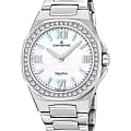Женские наручные часы Candino Elegance C4753/1 с надёжным кварцевым механизмом. Корпус и браслет часов изготовлены из нержавеющей стали. Сапфировое стеклоСапфировое стеклоПрочный и надёжный материал из кристалла сапфира синтетического происхождения, характеризующийся особой твёрдостью и устойчивостью к царапинам и повреждениям. повышенной прозрачности, устойчивое к мелким механическим повреждениям. Стальной браслет на раскладной застёжкеРаскладная застёжкаТакой тип застёжки используется только на браслетах из металла. Она никогда не раскрывается полностью, происходит разделение на 2 и более частей. Раскладывающая застёжка снизит вероятность потери часов к минимуму.. Стрелки и метки с люминесцентным покрытиемЛюминесцентное покрытиеПозволяет считывать показания времени в темноте. Производители наносят на стрелки, часовые индексы, безель или поверхность циферблата светонакопительный состав, дающий холодное свечение.. БезельБезельВнешний ободок, закрепляющий стекло. В спортивных часах так называется поворотное кольцо с делениями на циферблате, выполняет роль таймера – замеряет отрезки времени на шкале. Неподвижный безель – элемент декора. Однонаправленно вращающийся безель на дайверских часах позволяет фиксировать моменты погружения и выныривания на поверхность. инкрустирован кристаллами. Класс водозащиты: 50 метров, позволит защитить корпус от случайных брызг или капель дождя.