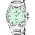 Женские наручные часы Candino Elegance C4753/2 с надёжным кварцевым механизмом. Корпус и браслет часов изготовлены из нержавеющей стали. Сапфировое стеклоСапфировое стеклоПрочный и надёжный материал из кристалла сапфира синтетического происхождения, характеризующийся особой твёрдостью и устойчивостью к царапинам и повреждениям. повышенной прозрачности, устойчивое к мелким механическим повреждениям. Стальной браслет на раскладной застёжкеРаскладная застёжкаТакой тип застёжки используется только на браслетах из металла. Она никогда не раскрывается полностью, происходит разделение на 2 и более частей. Раскладывающая застёжка снизит вероятность потери часов к минимуму.. Стрелки и метки с люминесцентным покрытиемЛюминесцентное покрытиеПозволяет считывать показания времени в темноте. Производители наносят на стрелки, часовые индексы, безель или поверхность циферблата светонакопительный состав, дающий холодное свечение.. БезельБезельВнешний ободок, закрепляющий стекло. В спортивных часах так называется поворотное кольцо с делениями на циферблате, выполняет роль таймера – замеряет отрезки времени на шкале. Неподвижный безель – элемент декора. Однонаправленно вращающийся безель на дайверских часах позволяет фиксировать моменты погружения и выныривания на поверхность. инкрустирован кристаллами. Класс водозащиты: 50 метров, позволит защитить корпус от случайных брызг или капель дождя.