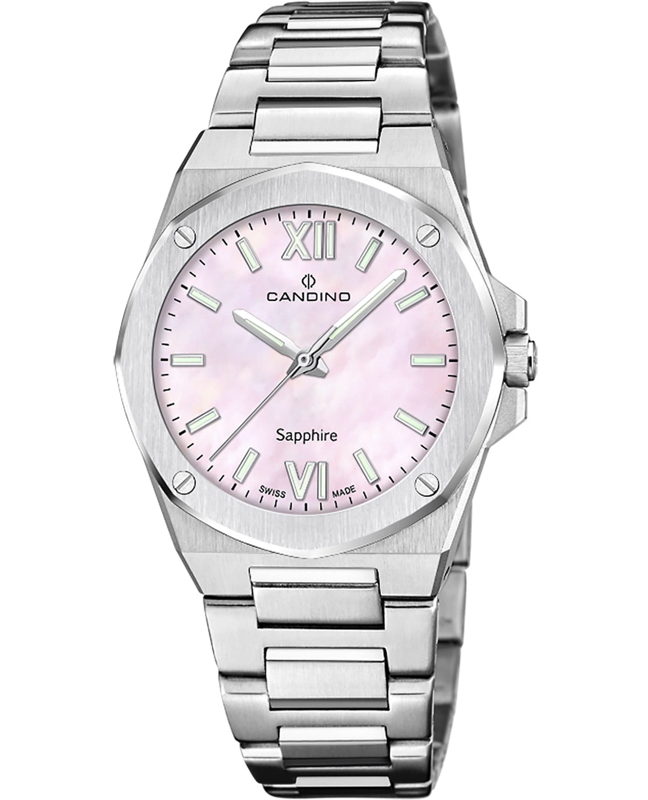 Женские кварцевые часы Candino из коллекции Lady Elegance — это стильный аксессуар, сочетающий швейцарское качество и элегантный дизайн. Корпус диаметром 33,5 мм и толщиной 8 мм выполнен из нержавеющей стали 316L. Циферблат розового цвета оформлен индексами и стрелками. Циферблат защищён сапфировым стекломСапфировое стеклоПрочный и надёжный материал из кристалла сапфира синтетического происхождения, характеризующийся особой твёрдостью и устойчивостью к царапинам и повреждениям., устойчивым к царапинам. Механизм — кварцевый, произведённый в Швейцарии. Часы оснащены стальным браслетом с раскладной застёжкойРаскладная застёжкаТакой тип застёжки используется только на браслетах из металла. Она никогда не раскрывается полностью, происходит разделение на 2 и более частей. Раскладывающая застёжка снизит вероятность потери часов к минимуму.. Водонепроницаемость 50 м позволяет использовать часы в повседневных условиях. Гарантия — 2 года. Идеальный выбор для тех, кто ценит точность, красоту и надёжность.
