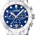 Женские часы Candino Chronos C4783/5 — сочетание элегантности и функциональности для современных женщин. Эти стильные часы-хронографХронографФункция позволяет измерять отрезки времени с особой точностью: часы, минуты, секунды. Верным признаком хронографа является наличие на циферблате 3 дополнительных окошек-счётчиков. с секундомеромСекундомерСекундоме́р — прибор, способный измерять интервалы времени с точностью до долей секунды. оснащены кварцевым механизмом, обеспечивающим точность и надежность. На безелеБезельВнешний ободок, закрепляющий стекло. В спортивных часах так называется поворотное кольцо с делениями на циферблате, выполняет роль таймера – замеряет отрезки времени на шкале. Неподвижный безель – элемент декора. Однонаправленно вращающийся безель на дайверских часах позволяет фиксировать моменты погружения и выныривания на поверхность. выгравирована секундная шкала. Синий циферблат с функцией отображения даты в районе 6 часов добавляет модели изысканности и позволяет легко отслеживать дату. Корпус диаметром 39 мм выполнен из прочной нержавеющей стали, что гарантирует долговечность и устойчивость к внешним воздействиям. Сапфировое стеклоСапфировое стеклоПрочный и надёжный материал из кристалла сапфира синтетического происхождения, характеризующийся особой твёрдостью и устойчивостью к царапинам и повреждениям. защищает циферблат, обеспечивая высокую степень защиты от царапин и сохраняя первозданный вид часов. Стрелки и метки с люминесцентным покрытиемЛюминесцентное покрытиеПозволяет считывать показания времени в темноте. Производители наносят на стрелки, часовые индексы, безель или поверхность циферблата светонакопительный состав, дающий холодное свечение., что облегчает чтение времени даже в условиях слабого освещения. Стальной браслет на раскладной застёжкеРаскладная застёжкаТакой тип застёжки используется только на браслетах из металла. Она никогда не раскрывается полностью, происходит разделение на 2 и более частей. Раскладывающая застёжка снизит вероятность потери часов к минимуму. добавляет современный штрих и комфортно сидит на запястье, идеально подходя для повседневного ношения. С водонепроницаемостью до 100 метров эти часы подходят для активного образа жизни, позволяя не беспокоиться о случайных контактах с водой, таких как плавание или дождь.