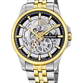 Мужские часы Candino C4784/1 из коллекции Automatic — воплощение изысканности и надежности. Эти часы оснащены автоматическим механизмом, который обеспечивает точное измерение времени без необходимости частой подзаводки. Элегантный серебристо-черный циферблат с открытым механизмом и метками в виде штрихов придают модели уникальный и современный вид, позволяя заглянуть в сердце механизма. Корпус диаметром 42 мм изготовлен из прочной нержавеющей стали, а безельБезельВнешний ободок, закрепляющий стекло. В спортивных часах так называется поворотное кольцо с делениями на циферблате, выполняет роль таймера – замеряет отрезки времени на шкале. Неподвижный безель – элемент декора. Однонаправленно вращающийся безель на дайверских часах позволяет фиксировать моменты погружения и выныривания на поверхность. с золотистым IP-покрытиемIP-покрытиеМетод ионного напыления. Демонстрирует повышенную устойчивость к истиранию, окислению и химическим веществам. Под воздействием высокого давления и температуры около 1500°C молекулы металла надёжно соединяются с частицами корпуса часов., что гарантирует долговечность и устойчивость к внешним повреждениям. Сапфировое стеклоСапфировое стеклоПрочный и надёжный материал из кристалла сапфира синтетического происхождения, характеризующийся особой твёрдостью и устойчивостью к царапинам и повреждениям. обеспечивает высокую степень защиты от царапин и сохраняет первозданный вид часов на протяжении долгого времени. Стрелки и метки с люминесцентным покрытиемЛюминесцентное покрытиеПозволяет считывать показания времени в темноте. Производители наносят на стрелки, часовые индексы, безель или поверхность циферблата светонакопительный состав, дающий холодное свечение., что облегчает чтение времени даже в условиях слабого освещения. Стальной браслет с частичным IP-покрытиемIP-покрытиеМетод ионного напыления. Демонстрирует повышенную устойчивость к истиранию, окислению и химическим веществам. Под воздействием высокого давления и температуры около 1500°C молекулы металла надёжно соединяются с частицами корпуса часов. на раскладной застёжкеРаскладная застёжкаТакой тип застёжки используется только на браслетах из металла. Она никогда не раскрывается полностью, происходит разделение на 2 и более частей. Раскладывающая застёжка снизит вероятность потери часов к минимуму. не только дополняет общую эстетику, но и обеспечивает комфортное ношение на протяжении всего дня. С водонепроницаемостью до 50 метров эти часы подходят для повседневного использования, выдерживая случайные контакты с водой, такие как дождь или мытьё рук. Эти часы станут идеальным аксессуаром для уверенного в себе мужчины, который ценит стиль и функциональность в каждом элементе своего образа.