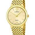 Мужские кварцевые часы Candino из коллекции Series 1947 — это сочетание минимализма, швейцарского качества и современного дизайна. Корпус диаметром 39 мм и толщиной 6 мм выполнен из нержавеющей стали 316L с PVD-покрытиемPVDУльтратонкое покрытие наносится в технике вакуумного напыления, сочетает в себе нитрид титана особой прочности со слоем золота или оксида хрома. Несёт в себе декоративную или защитную функцию. жёлтого золота. Циферблат золотого цвета оформлен двумя стрелками без индикации даты, что придаёт дизайну чистоту и элегантность. Циферблат защищён сапфировым стекломСапфировое стеклоПрочный и надёжный материал из кристалла сапфира синтетического происхождения, характеризующийся особой твёрдостью и устойчивостью к царапинам и повреждениям., устойчивым к царапинам. Механизм — кварцевый произведённый в Швейцарии. Часы оснащены стальным браслетом с PVD-покрытиемPVDУльтратонкое покрытие наносится в технике вакуумного напыления, сочетает в себе нитрид титана особой прочности со слоем золота или оксида хрома. Несёт в себе декоративную или защитную функцию. жёлтого золота на застёжке «бабочка» с кнопкамиЗастёжка "бабочка"Такой вид застёжки дополняется предохранителями, помогающими избежать случайного раскрытия браслета. Обладают изящным исполнением. . Водонепроницаемость 50 м позволяет использовать часы в повседневных условиях. Гарантия — 2 года. Идеальный выбор для тех, кто ценит лаконичный стиль, точность и надёжность.