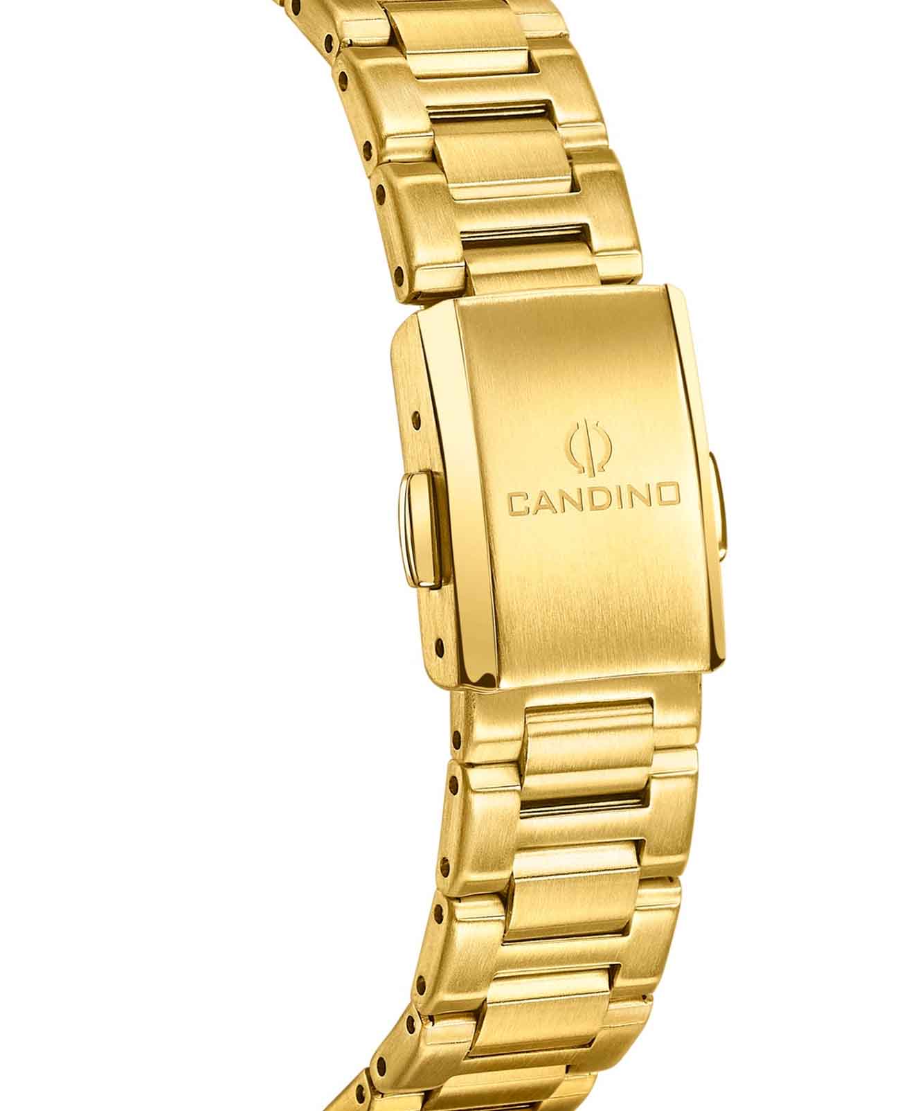 Женские кварцевые часы с автоподзаводом Candino Lady Elegance Date C4755/1. Сапфировое стеклоСапфировое стеклоПрочный и надёжный материал из кристалла сапфира синтетического происхождения, характеризующийся особой твёрдостью и устойчивостью к царапинам и повреждениям. повышенной прозрачности, устойчивое к мелким механическим повреждениям. Корпус изготовлен из нержавеющей стал с PVD-покрытиемPVDУльтратонкое покрытие наносится в технике вакуумного напыления, сочетает в себе нитрид титана особой прочности со слоем золота или оксида хрома. Несёт в себе декоративную или защитную функцию.. Стрелки с люминесцентным покрытиемЛюминесцентное покрытиеПозволяет считывать показания времени в темноте. Производители наносят на стрелки, часовые индексы, безель или поверхность циферблата светонакопительный состав, дающий холодное свечение.. Циферблат инкрустирован кристаллами. Класс водозащиты: 50 метров, позволит защитить корпус от случайных брызг или капель дождя. Окошко даты находится в положении 3 часа. Стальной браслет с PVD-покрытиемPVDУльтратонкое покрытие наносится в технике вакуумного напыления, сочетает в себе нитрид титана особой прочности со слоем золота или оксида хрома. Несёт в себе декоративную или защитную функцию. на раскладной застёжкеРаскладная застёжкаТакой тип застёжки используется только на браслетах из металла. Она никогда не раскрывается полностью, происходит разделение на 2 и более частей. Раскладывающая застёжка снизит вероятность потери часов к минимуму..