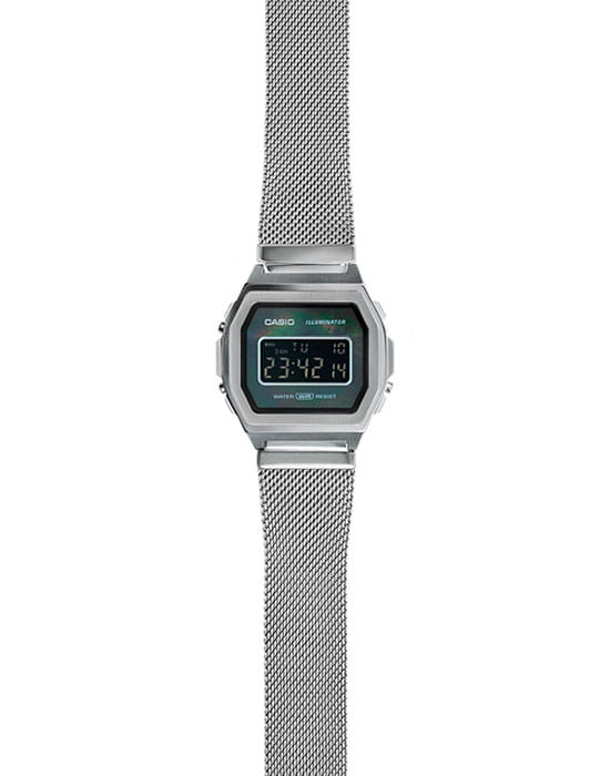 Аксессуар с фирменным для Casio 8-угольным корпусом будет гармонично смотреться как с деловым пиджаком, так и с повседневной водолазкой. Оригинальности добавляет переливающийся цифровой дисплей. Ударопрочный корпусУдаропрочный корпусМеханизм заключён в корпус, выполненный из современных материалов, устойчивых к ударам, механическим повреждениям и падению с высоты: инновационный пластик, карбон, нержавеющая сталь, титан. и браслет миланского плетения сделаны из нержавеющей стали 316L. Надёжное минеральное стекло. Срок работы батарейки - 3 года. Наличие будильника, секундомера, календаря. Светодиодная подсветкаСветодиодная подсветкаСветодиодная или LED-подсветка обеспечивает появление яркого холодного свечения за счёт LED-элементов - маленьких лампочек. Они потребляют минимальное количество энергии, чаще всего можно встретить 1 светодиод, в нижней части циферблата. дисплея. Габариты: 38 x 39,6 x 7,3 мм.