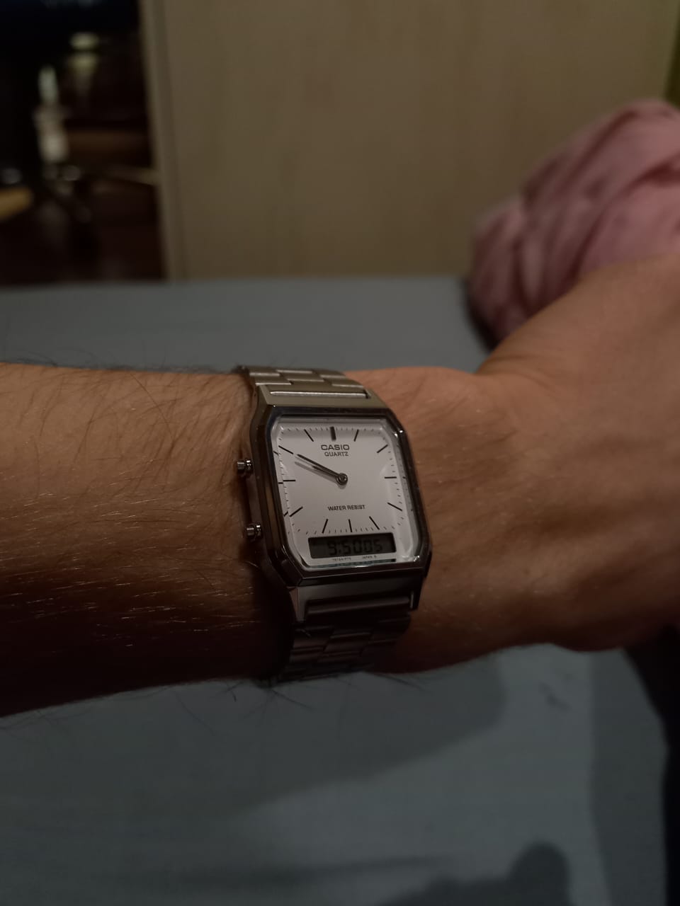 Часы хорошо сидят на руке. Элегантный браслет, выполненный из нержавеющей стали, классического плетения надёжный и прочный в повседневной носке. Застёжка легко регулируется по обхвату руки. Корпус выполнен из пластика. Есть будильник, секундомер, автоматический календарь.
