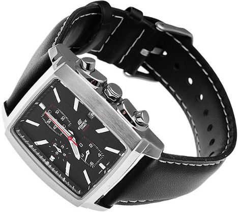 Мужские классические наручные часы Casio Edifice надежные и практичные. Кварцевый японский механизм Miyota. Точность хода не хуже -10 +15 сек./в месяц. Часы оснащены функцией хронографа. Циферблат черного цвета с контрастными индексами. Стрелки и индексы с светонакопительным нанесением. Корпус выполнен из высококачественной стали с антикоррозийными свойствами. Ремешок из натуральной кожи, чёрного цвета с белой строчкой. Минеральное стекло устойчиво к появлению царапин. Водонепроницаемость 100М. В часах можно плавать.